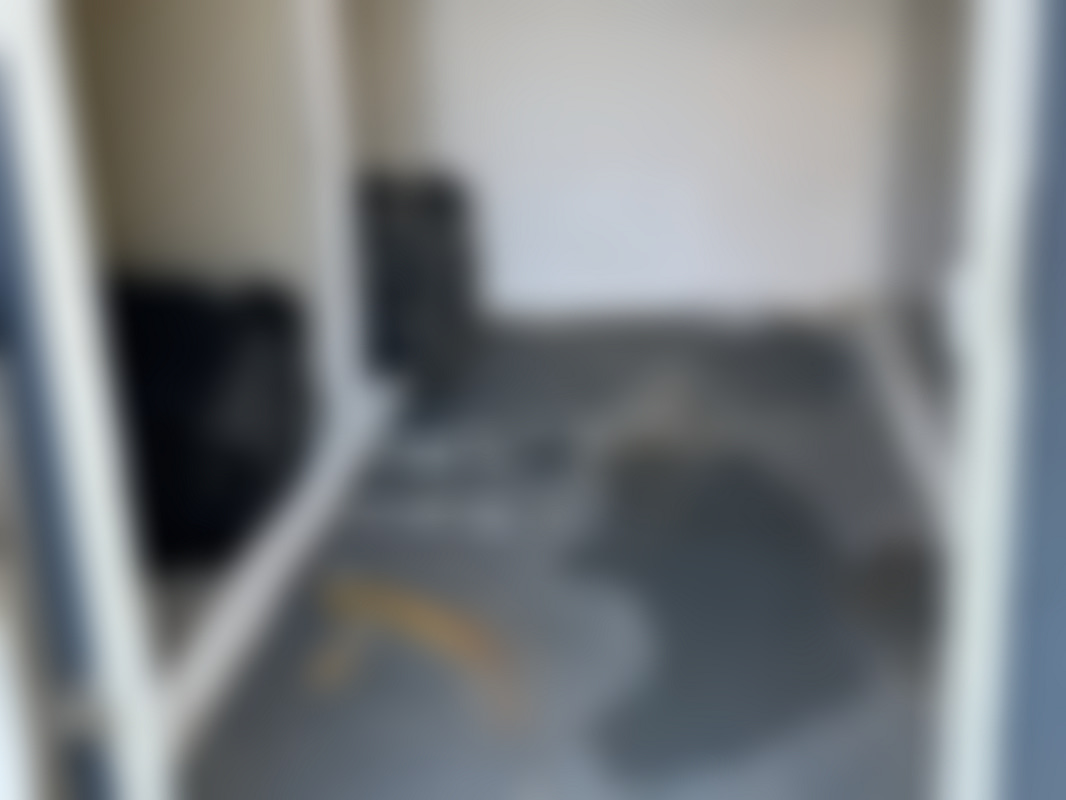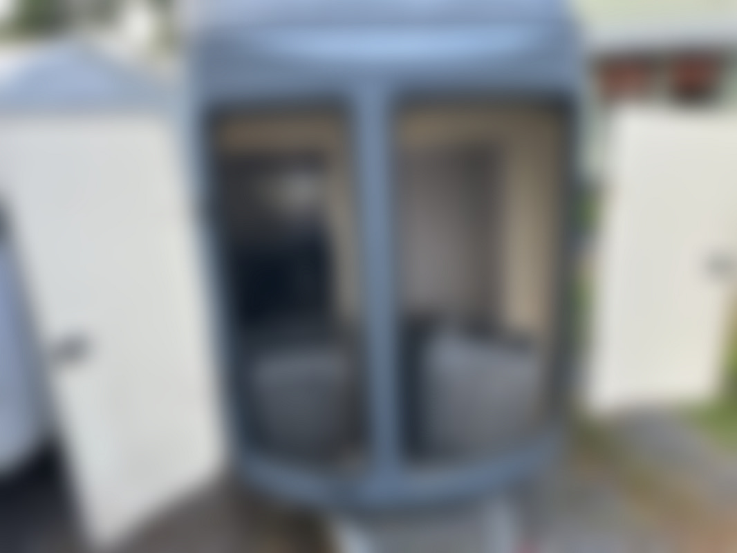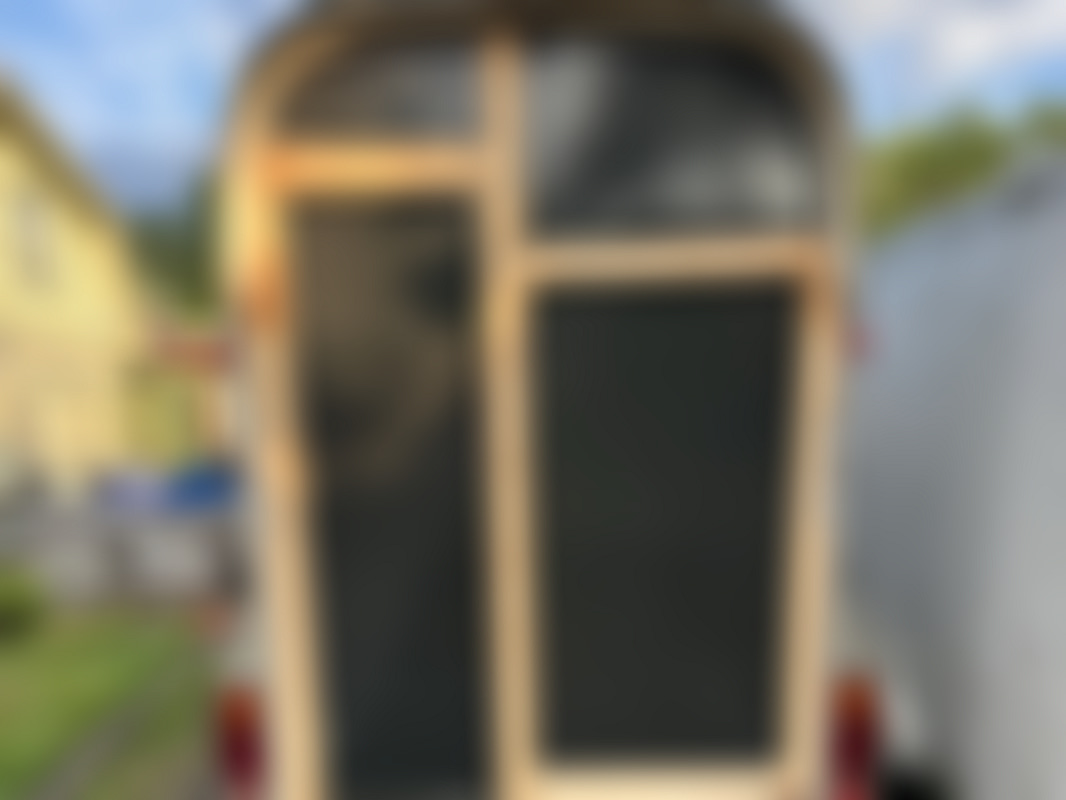 Inredning i släpet är skruvat fast och är lätt att demontera. Har använts som sluss vid arbete med Asbest.