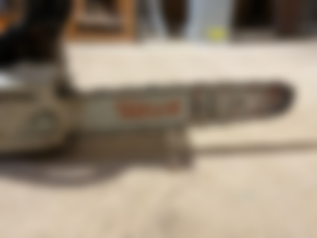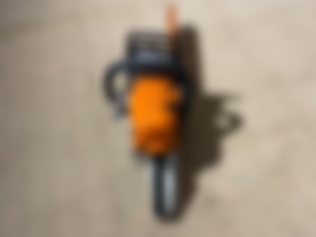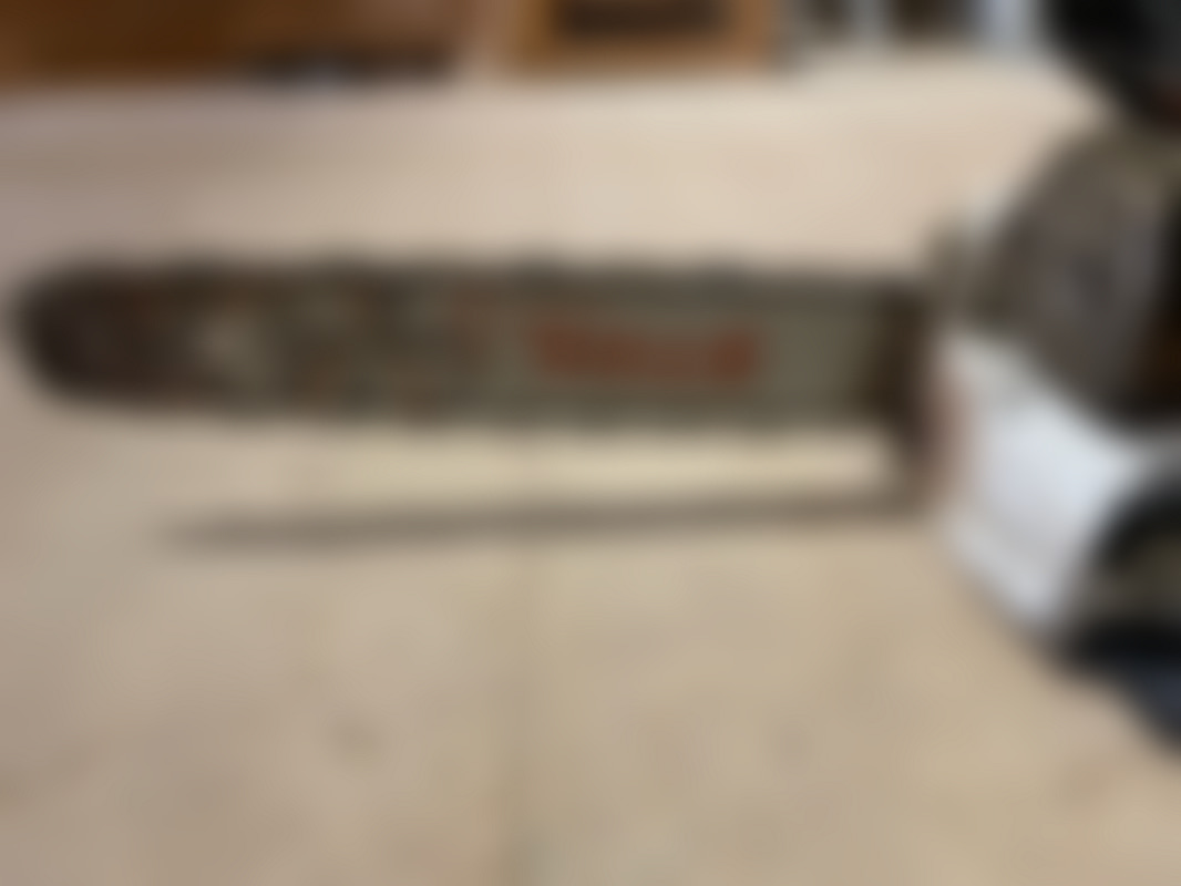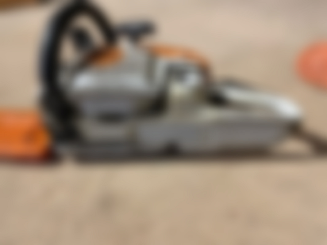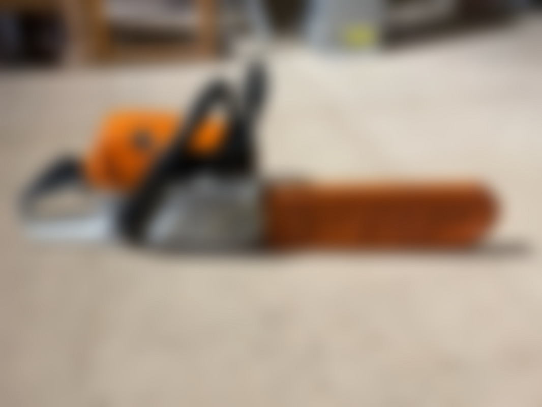 Not allowedStihl MS 241 C motorsåg med lång guidebalk och kedja. På bilderna syns ett orange topphus och vit undersida samt kedja monterad runt guidebalken.
