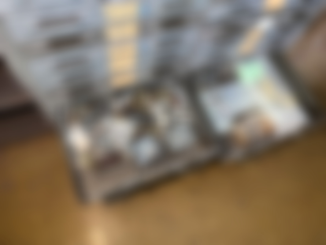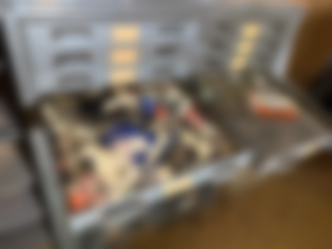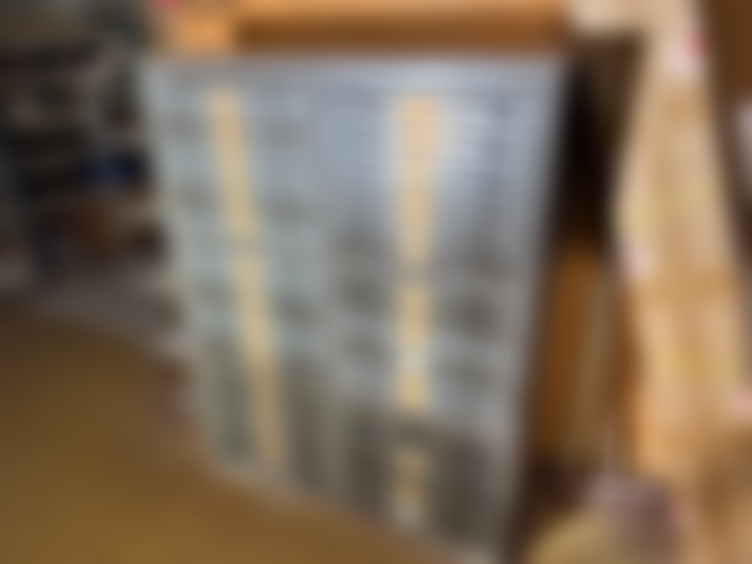 Lådhurts av plåt med innehåll. (32st lådor)