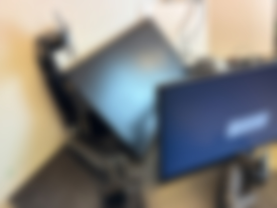 Extra skärmfäste, elkablar och hdmi-kablar medföljer.