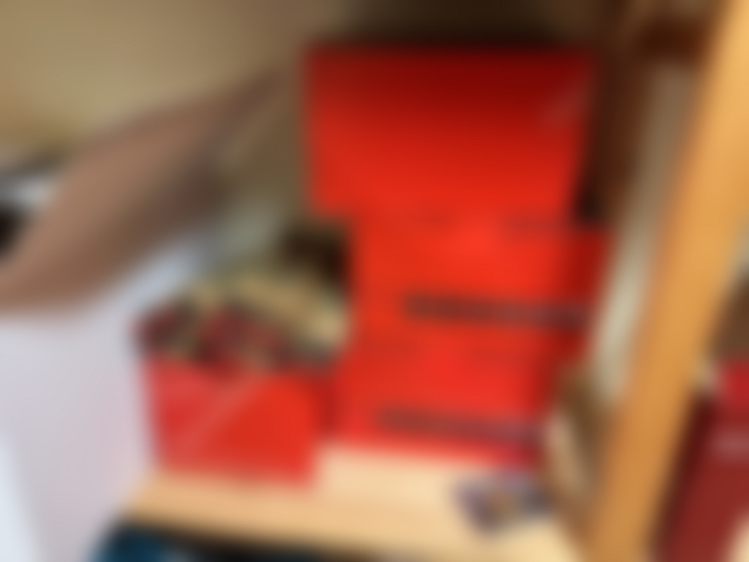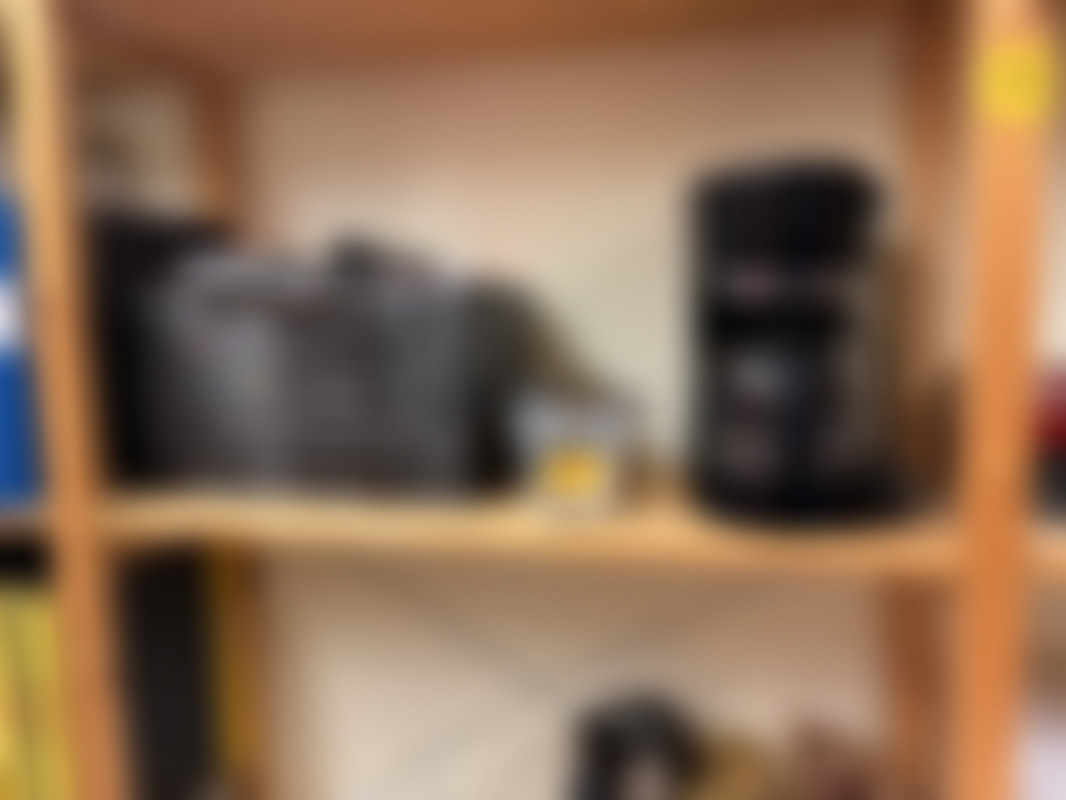 Not allowedEn lagerhylla med innehåll bestående av flera hyllor fyllda med lådor, förpackningar och verktyg samt olika tillbehör. Innehållet varierar och visar ett brett utbud av arbetsrelaterade föremål och förvaringslösningar.