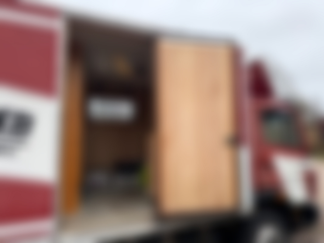 Mercedes-BenzSkåplastbil med inrett boxutrymme för projekt, service eller mobil förvaring. Skåp med gångdörrar och inredd del med våningssängar gör den användbar som bas vid säsongsjobb.