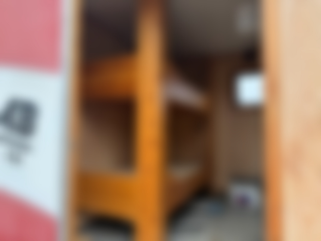 Inredning skåp: Träpanel och våningssäng (synligt på bilderna)