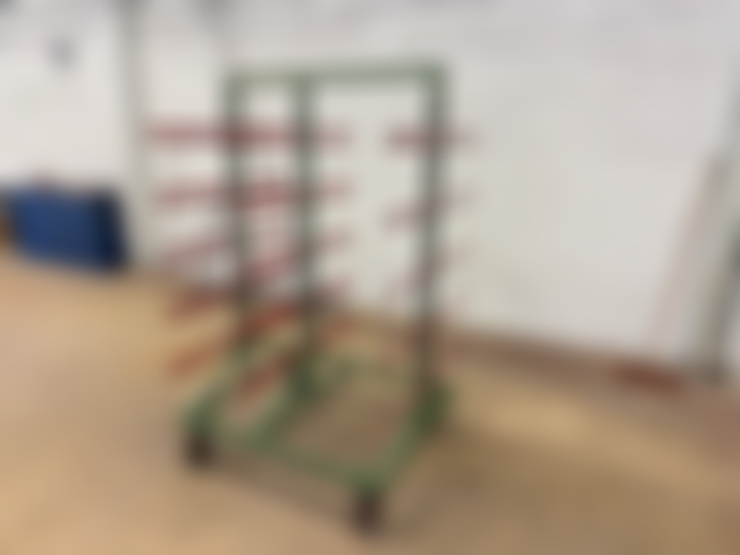 Not allowedRullbar grenställ‑vagn (cantilever‑vagn) med armar på båda sidor – perfekt för rör, profiler, lister och annat långgods.