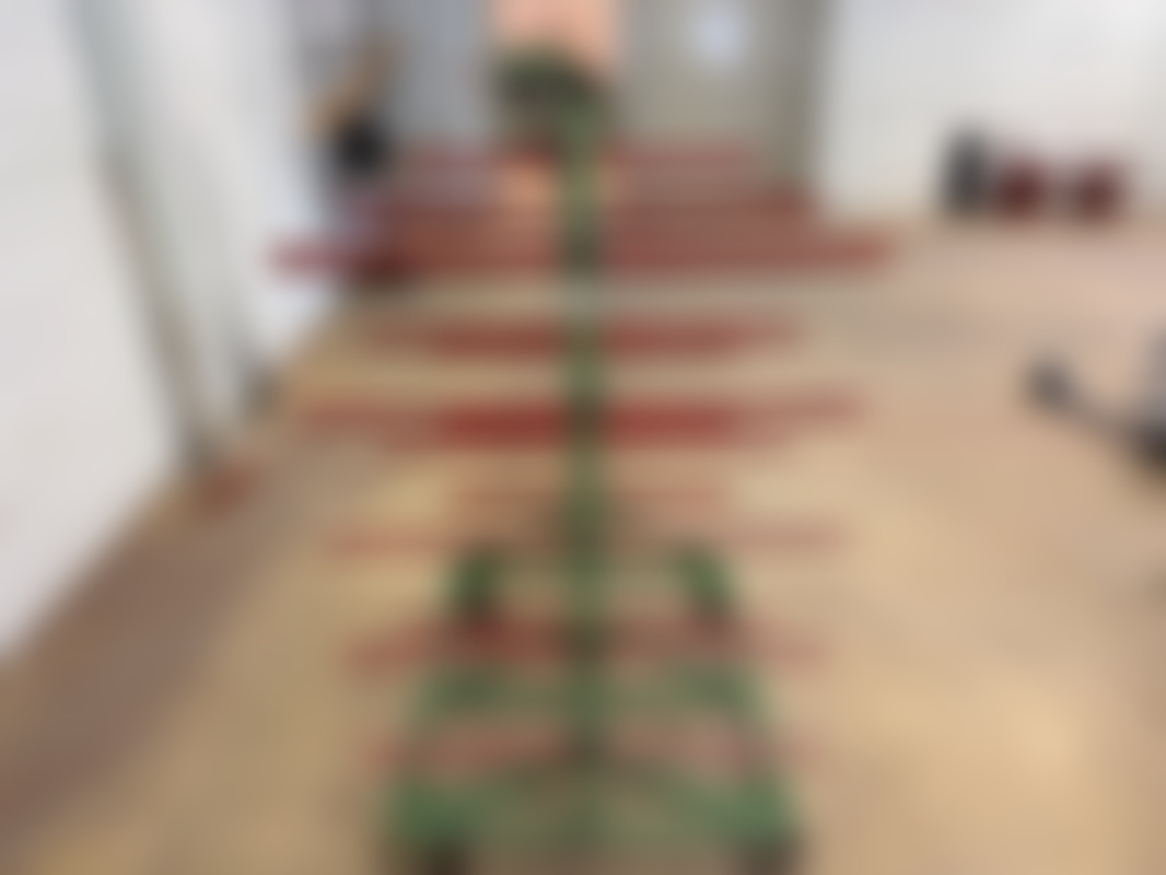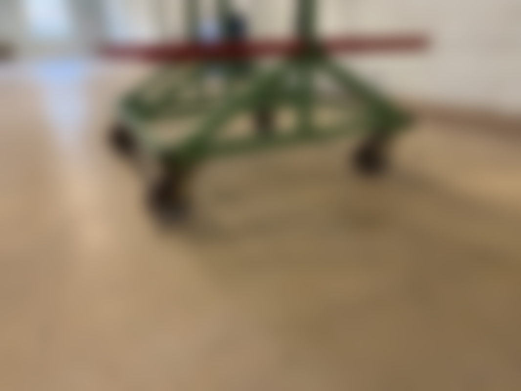 Färg: Grön stomme, röda armar, mörka hjul