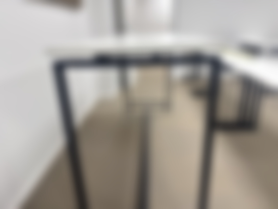 Not allowedVitt ståbord med svarta stålben.