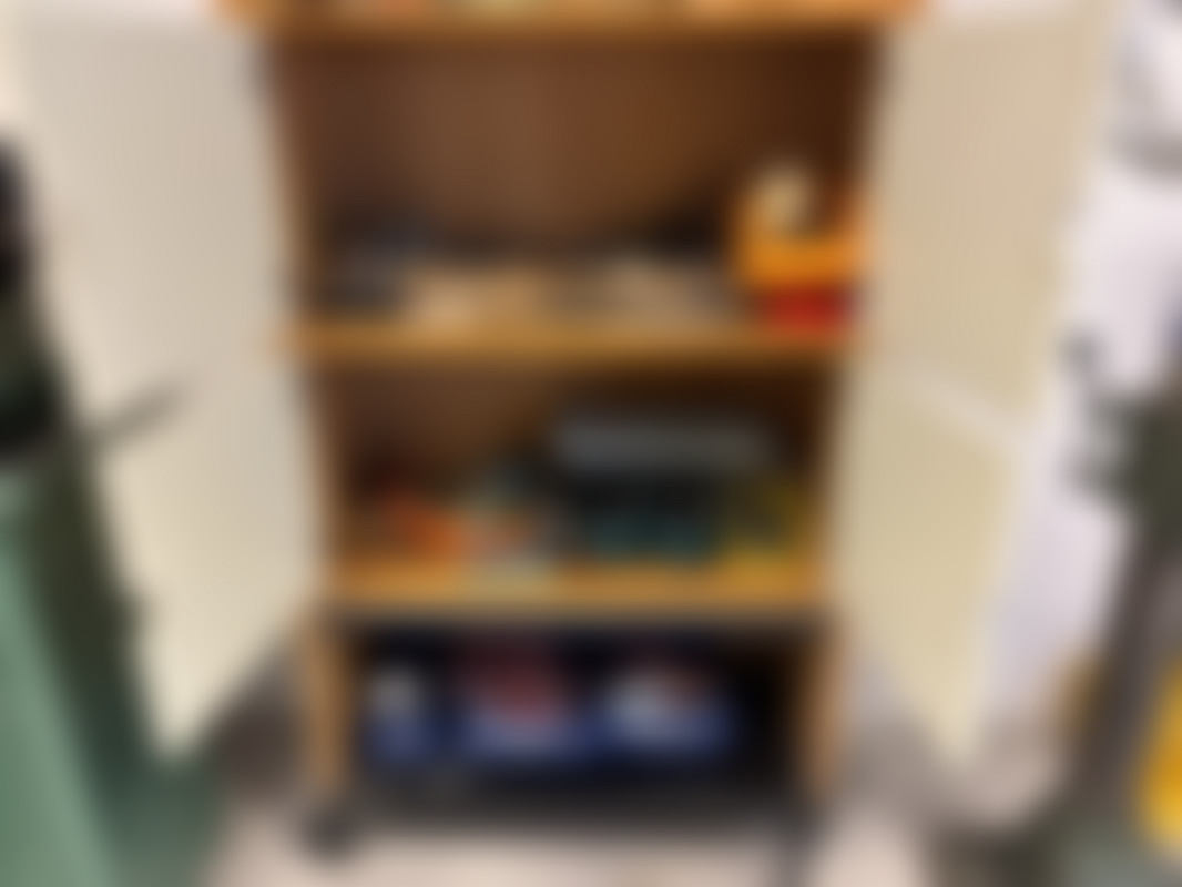 Olje”fat”skåp och verktygsskåp med innehåll
