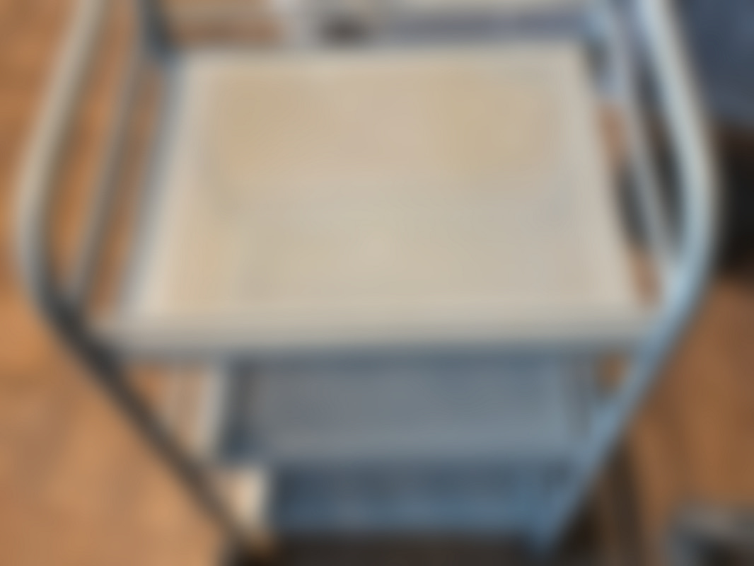Not allowedObs! Bucklor och lite rost förekommer på vagnen och papperskorgen, se bilder för exempel. Stolarna är dammiga.