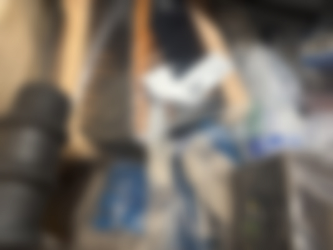 Arbetsbänk med diverse verktyg och drivremmar