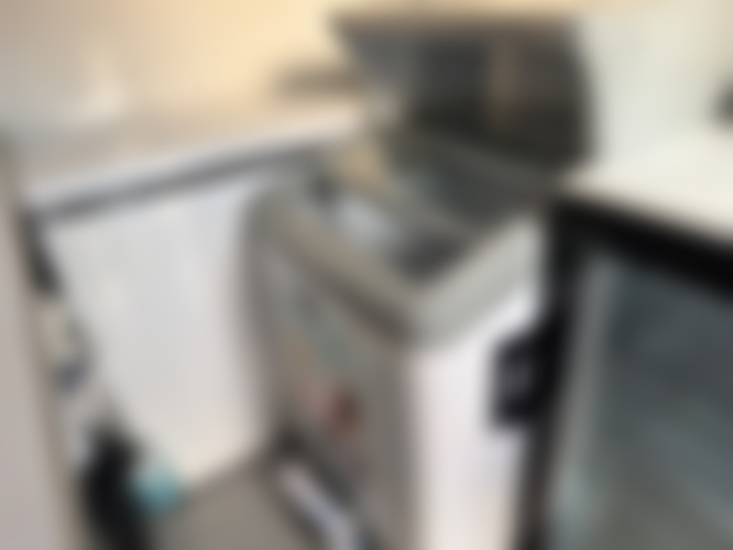 Inkl. glassmaskin, arbetsbänkar, hylla, 2 st kylskåp & 2 st frysboxar.