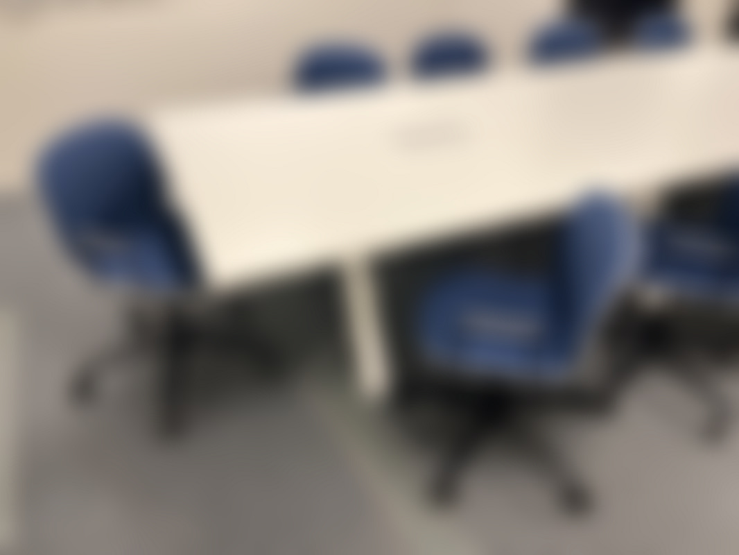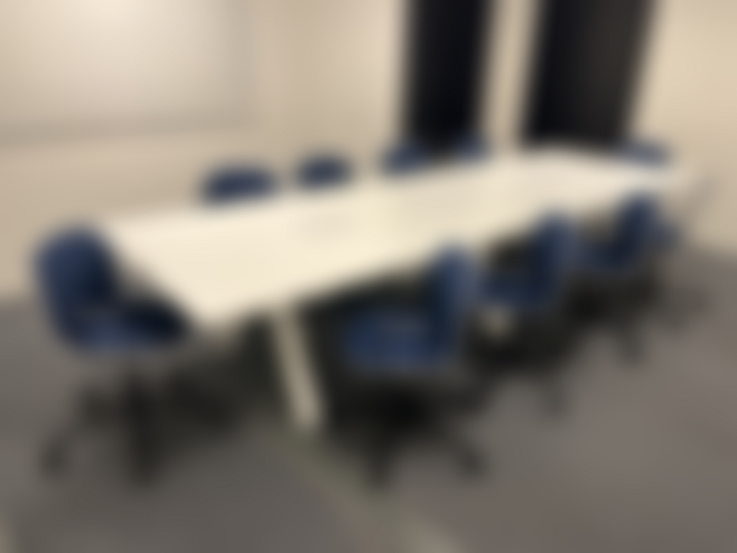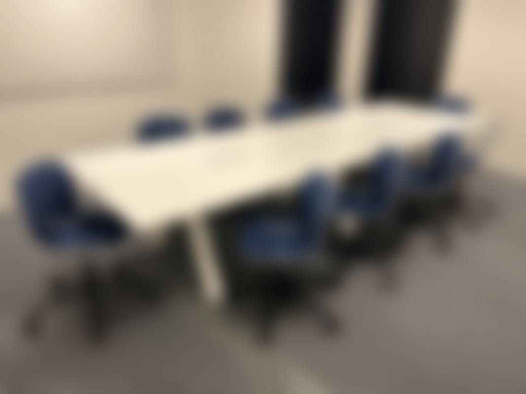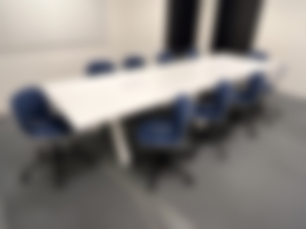 Not allowedVit konferensbord från Martela med eluttag i bordsskivan.