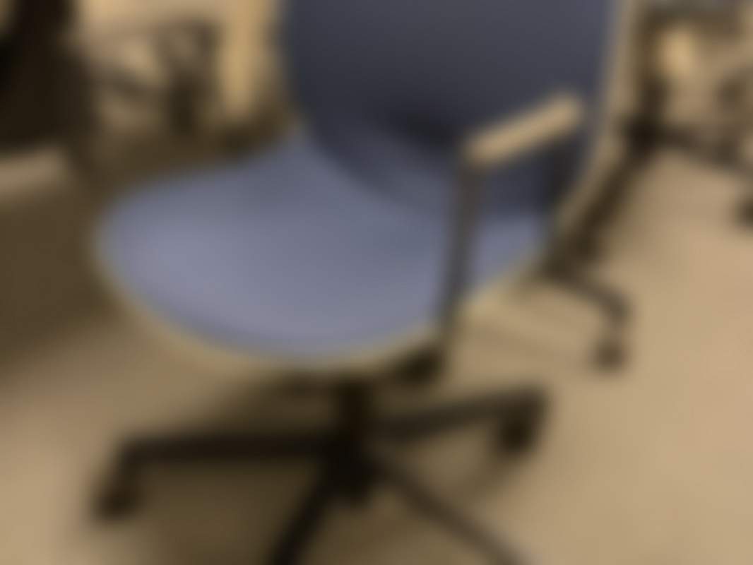 10 st konferensstol RBM Noor med blå klädsel, svarta fötter och hjul.