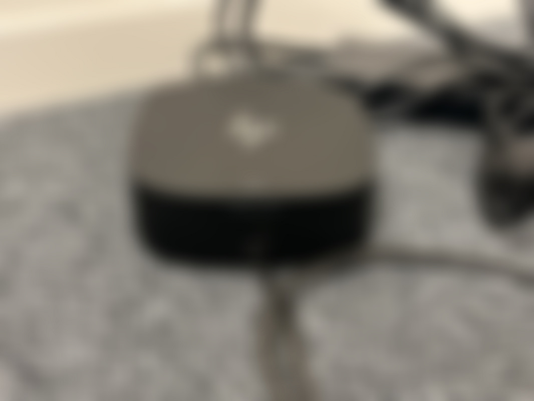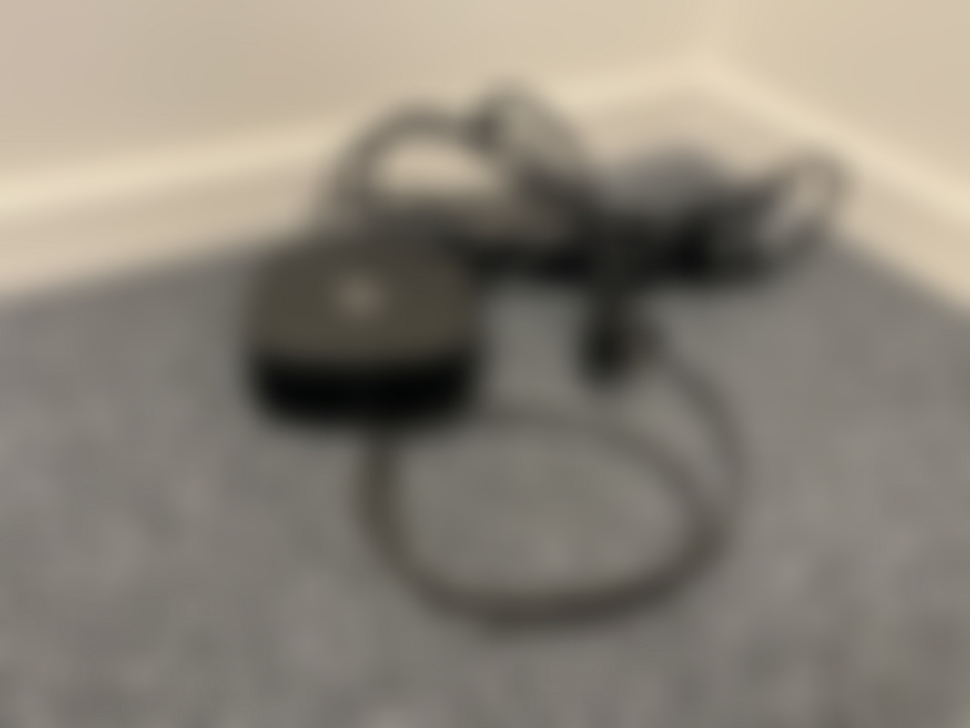 Kompakt svart dockningsstation med strömförsörjning och kablar.