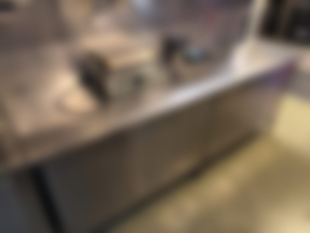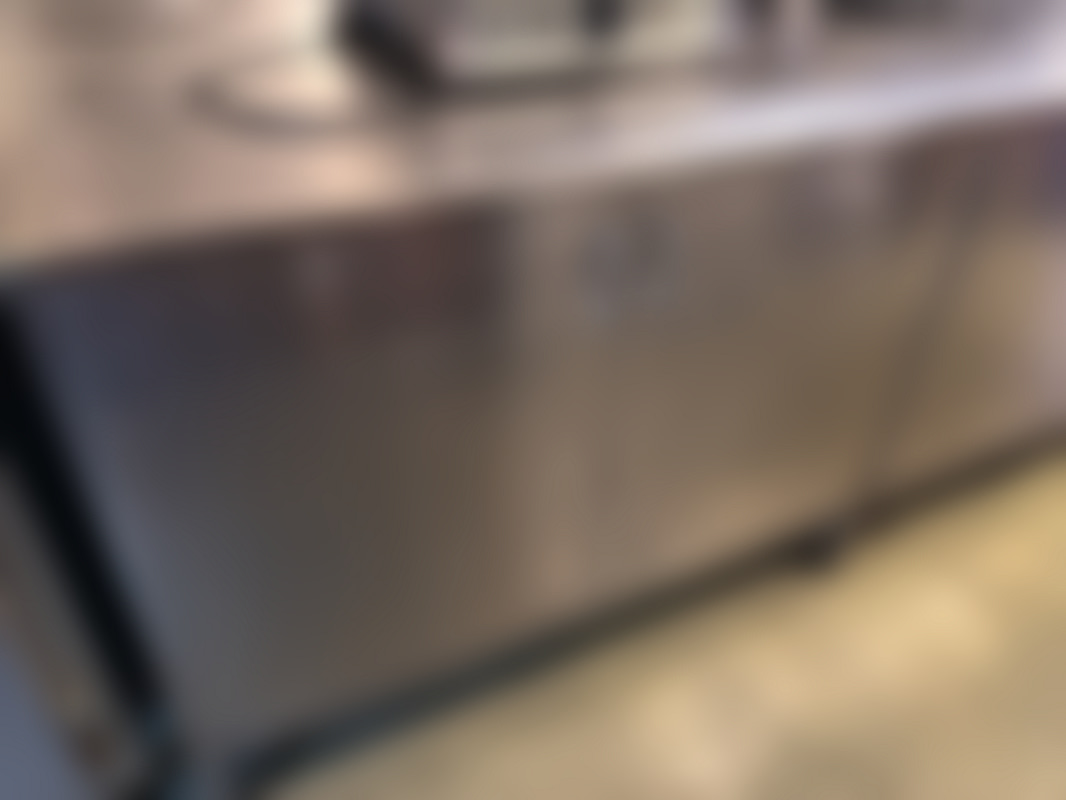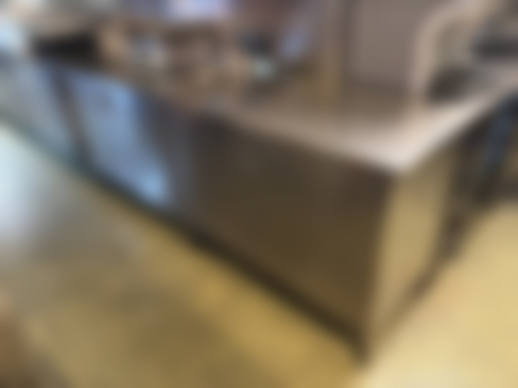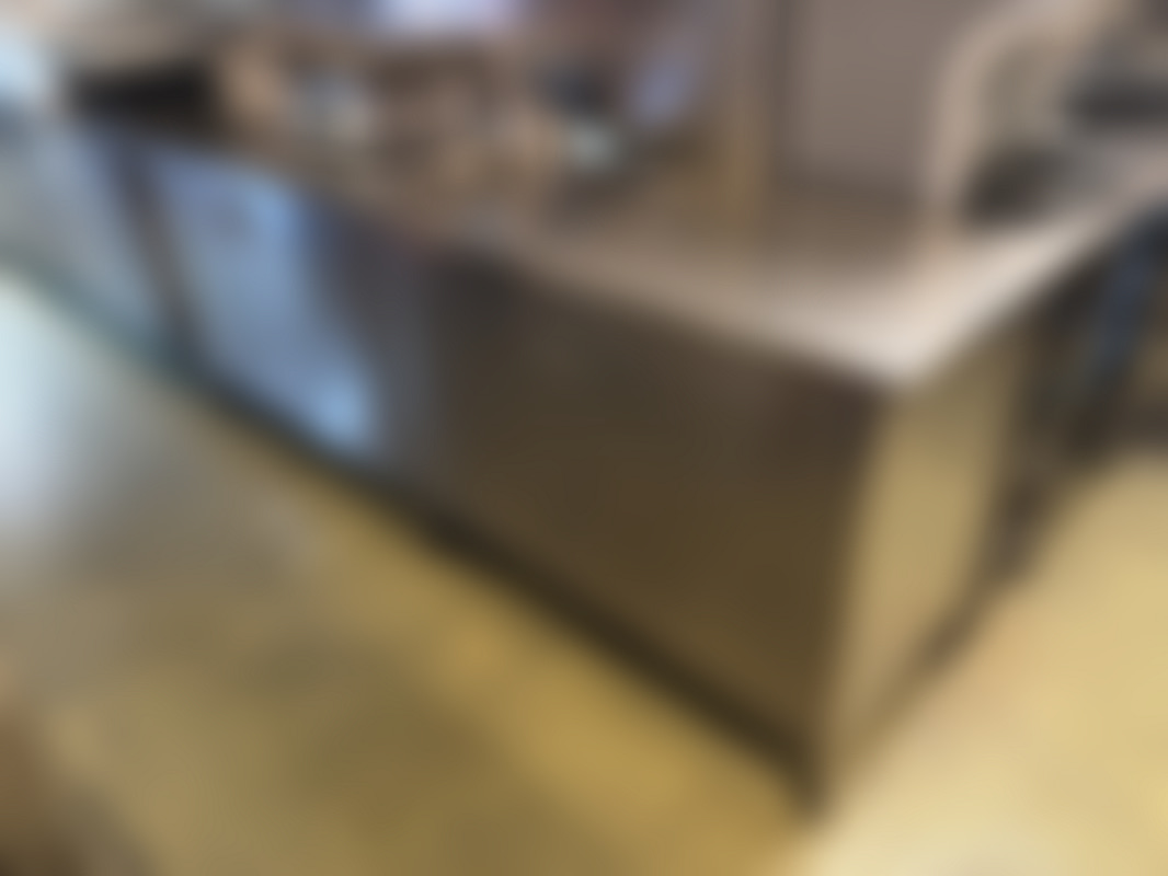 Not allowedRostfri arbetsbänk med skåp under för köksmiljö.