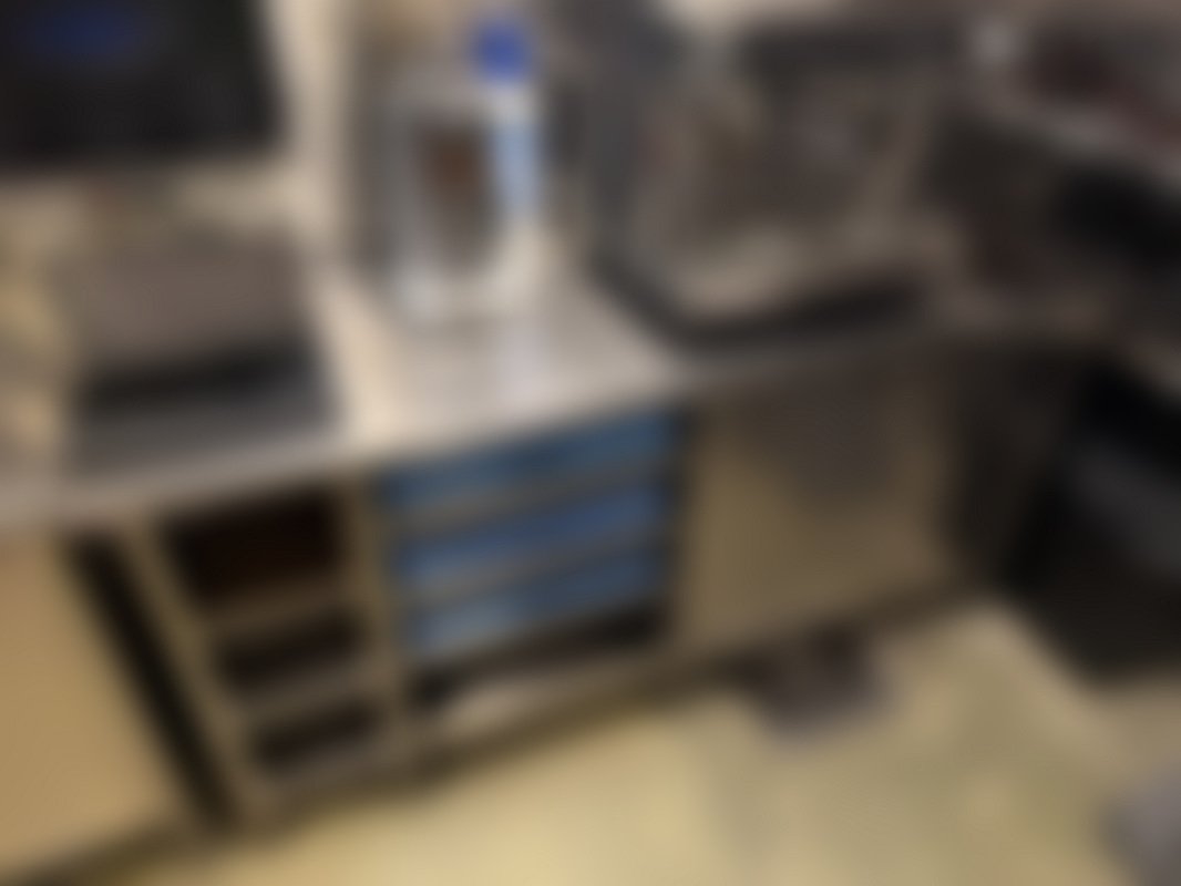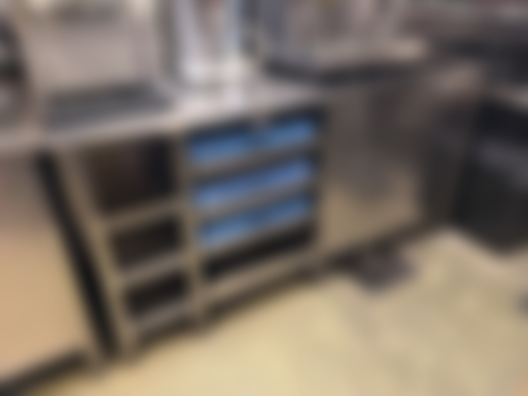 Not allowedRostfri köksbänk med skåp och plats för diskbackar.