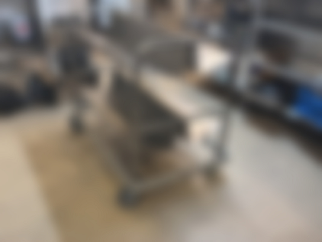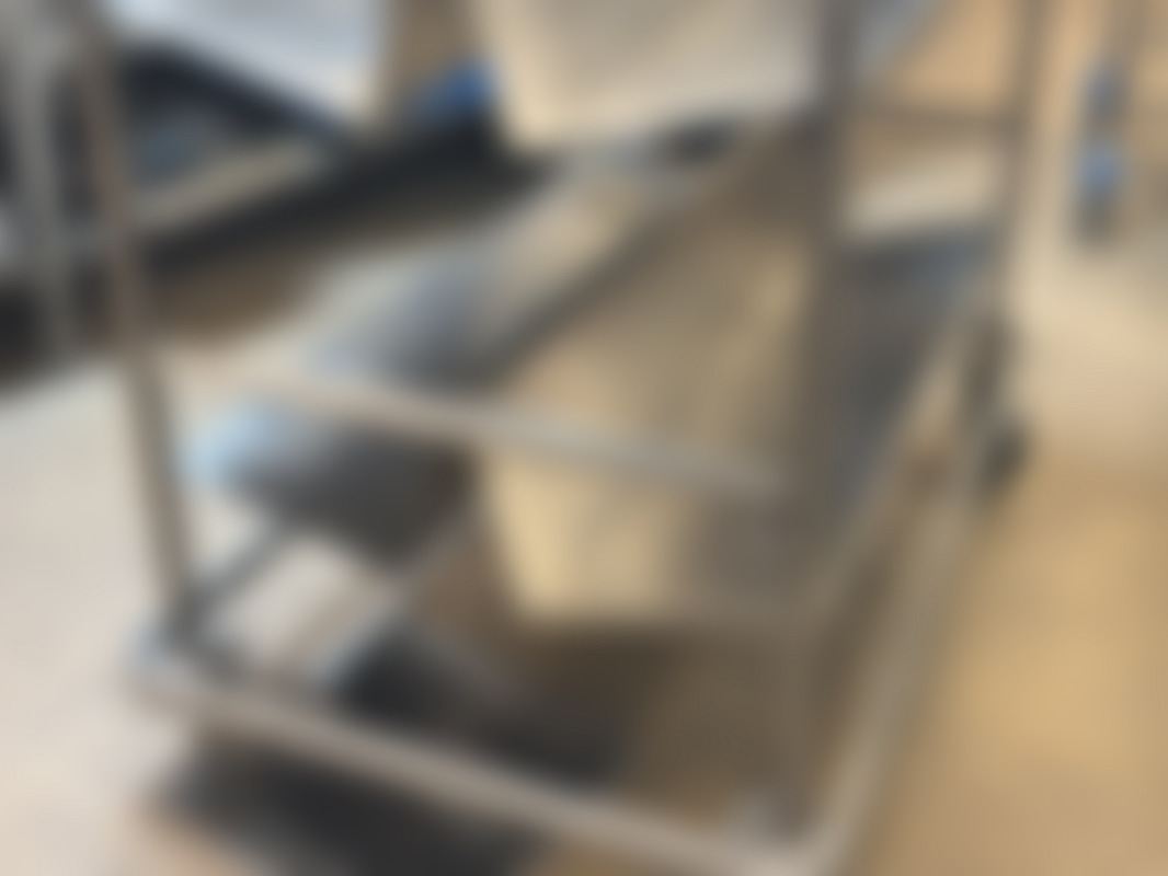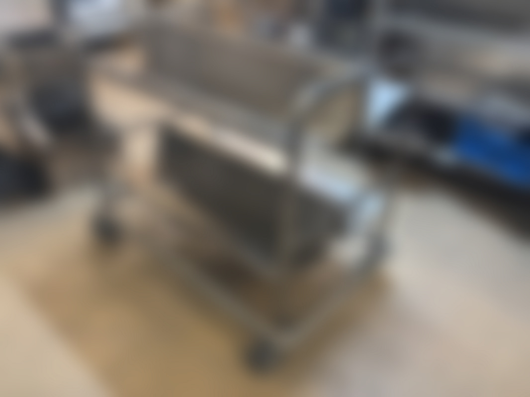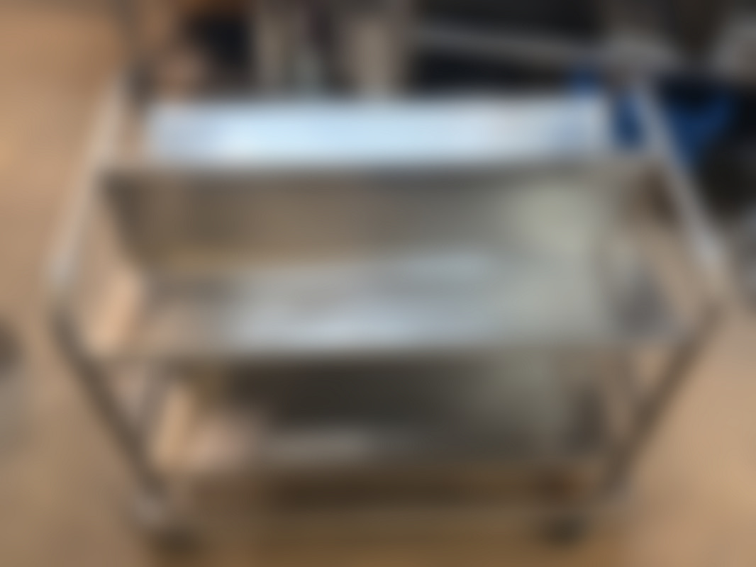 Not allowedMetallvagn med tre hyllor och fyra hjul.