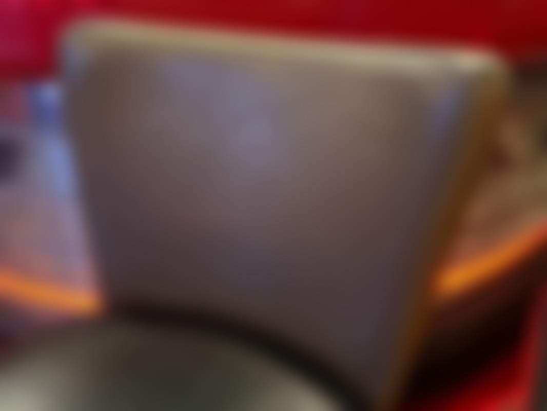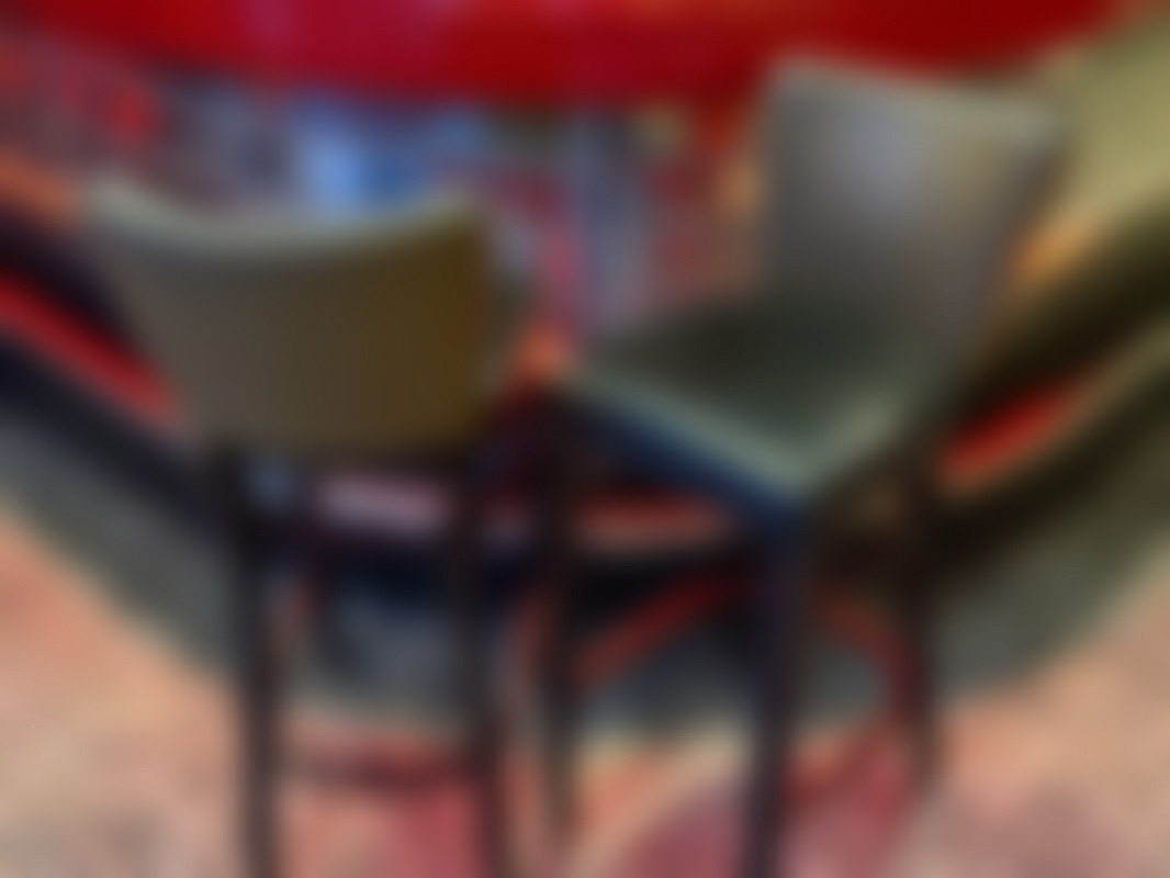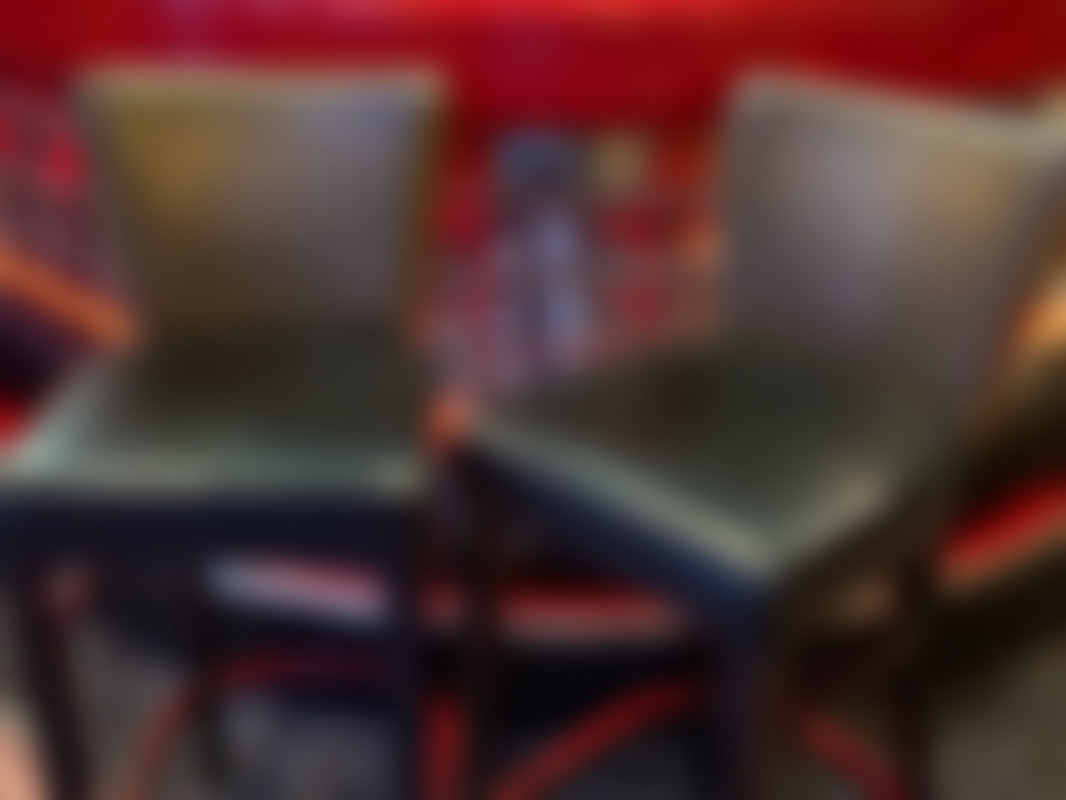 Not allowed4 st barstolar i svart trä med brun mönstrad rygg och svart vadderad sits.