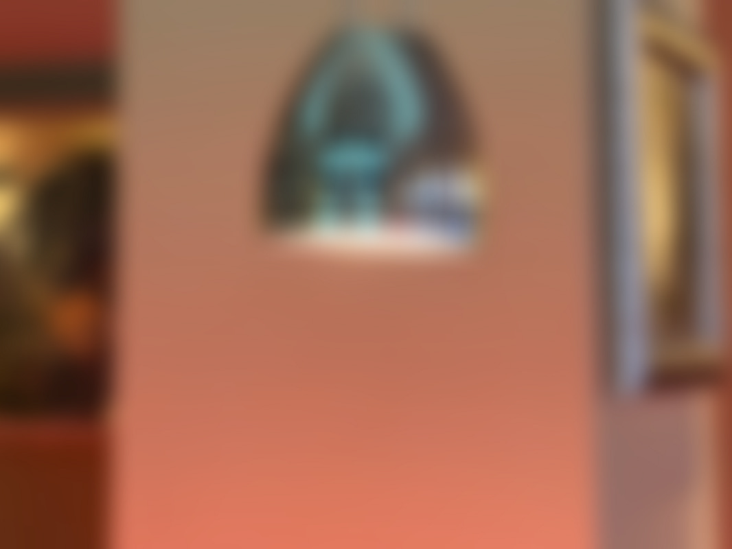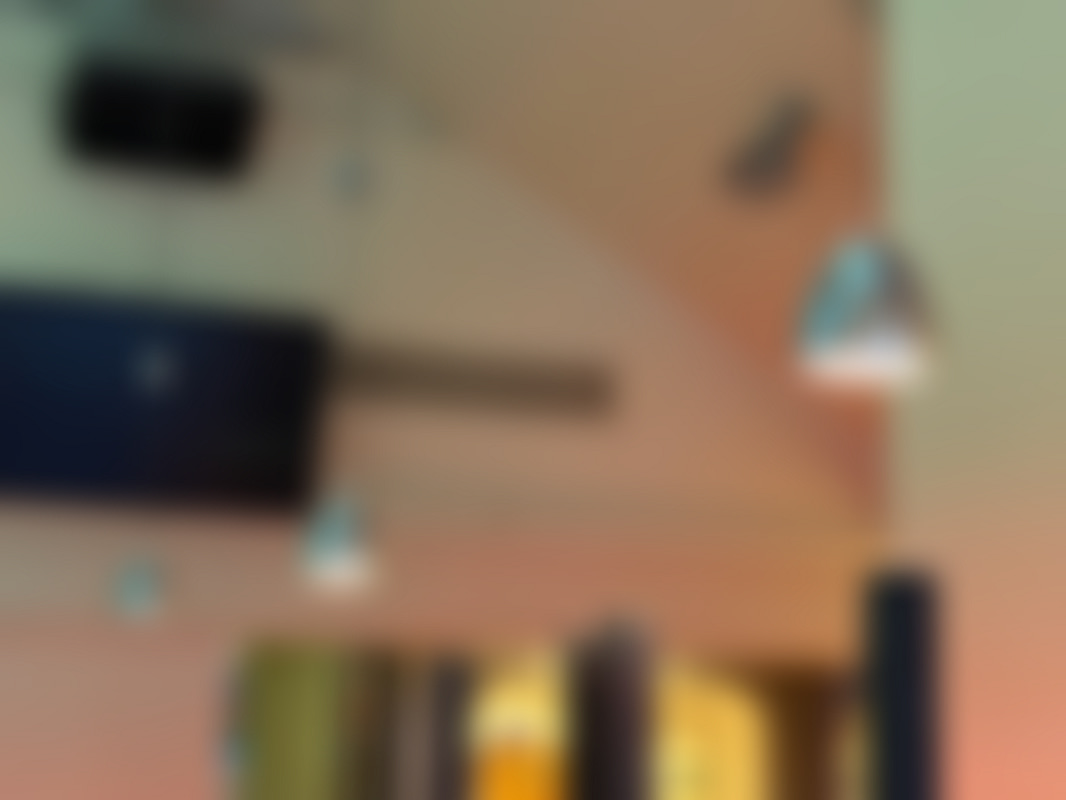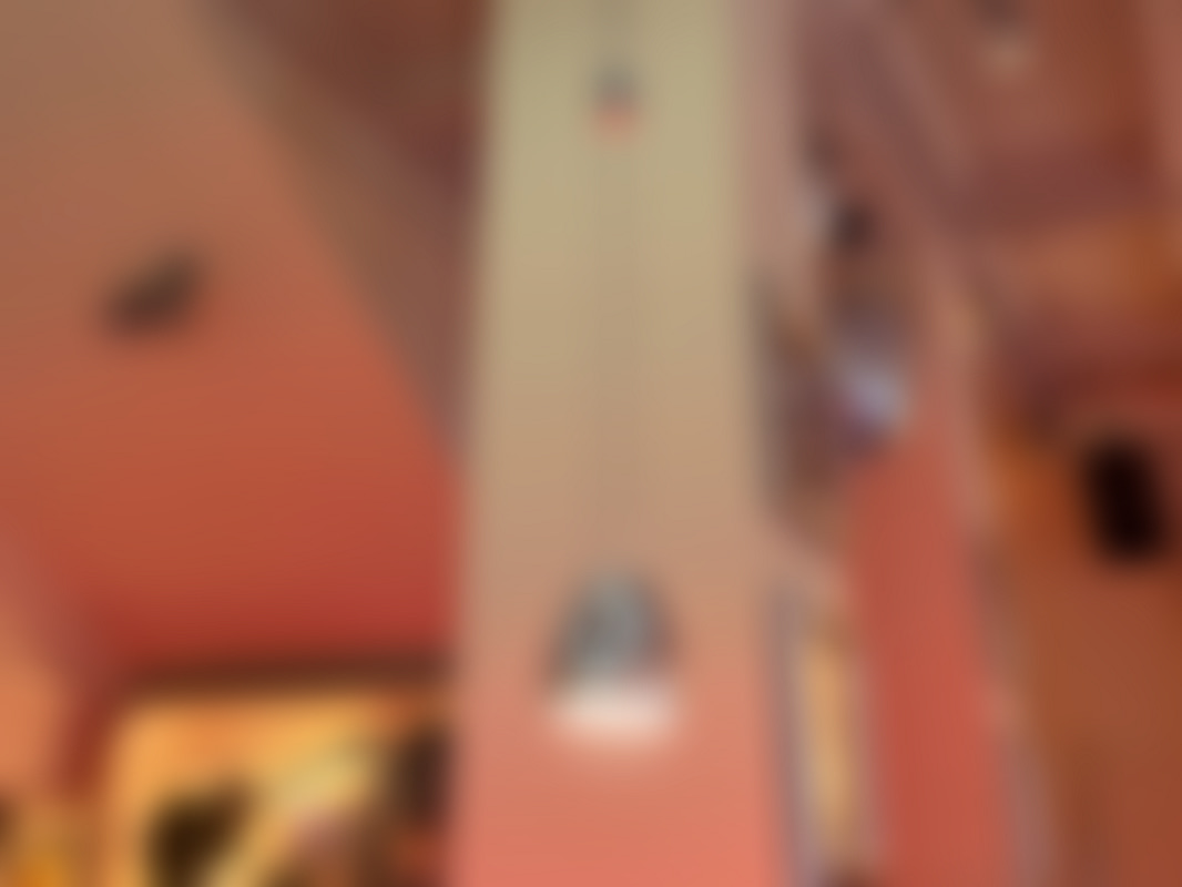 Not allowed13 st hänglampor i krom med kupolformade skärmar hänger i en restaurangmiljö.