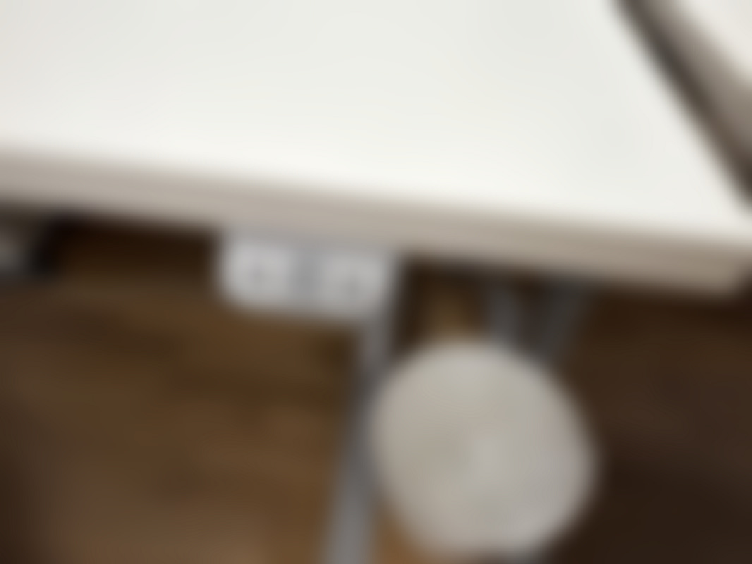 Not allowedVit höj- och sänkbart skrivbord med metallram