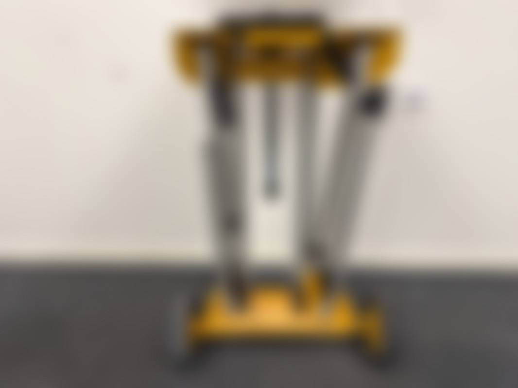 DewaltDeWalt DE7400 passar till sågborden DW744, DW745, DWE7485, DCS7485. Gul färg med svarta handtag och metallram. Stativet har fyra stödben och två små hjul för transport.