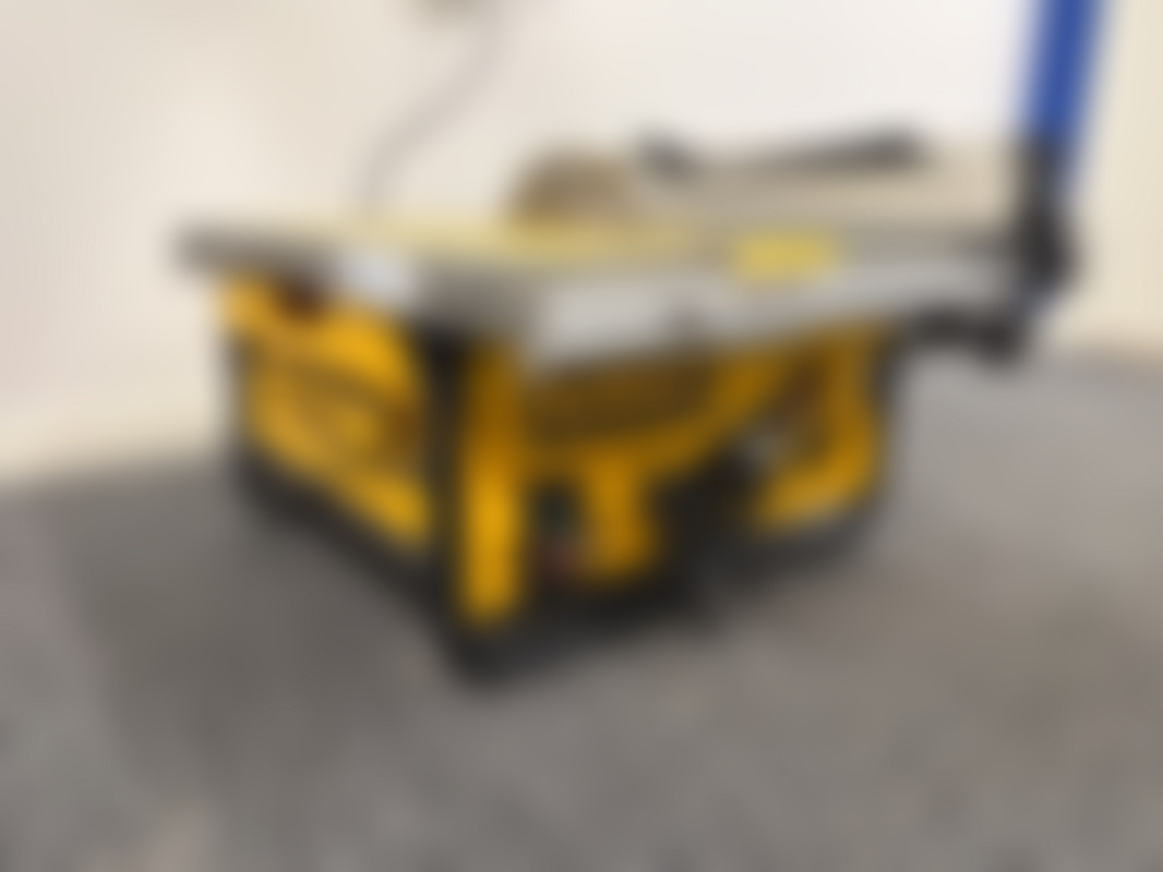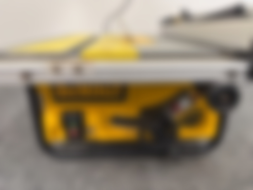 DewaltDeWALT bänksåg DW745, 230V, 1850W. Bordet har vinkel-/måttskala och en av/på-knapp synlig i fronten.