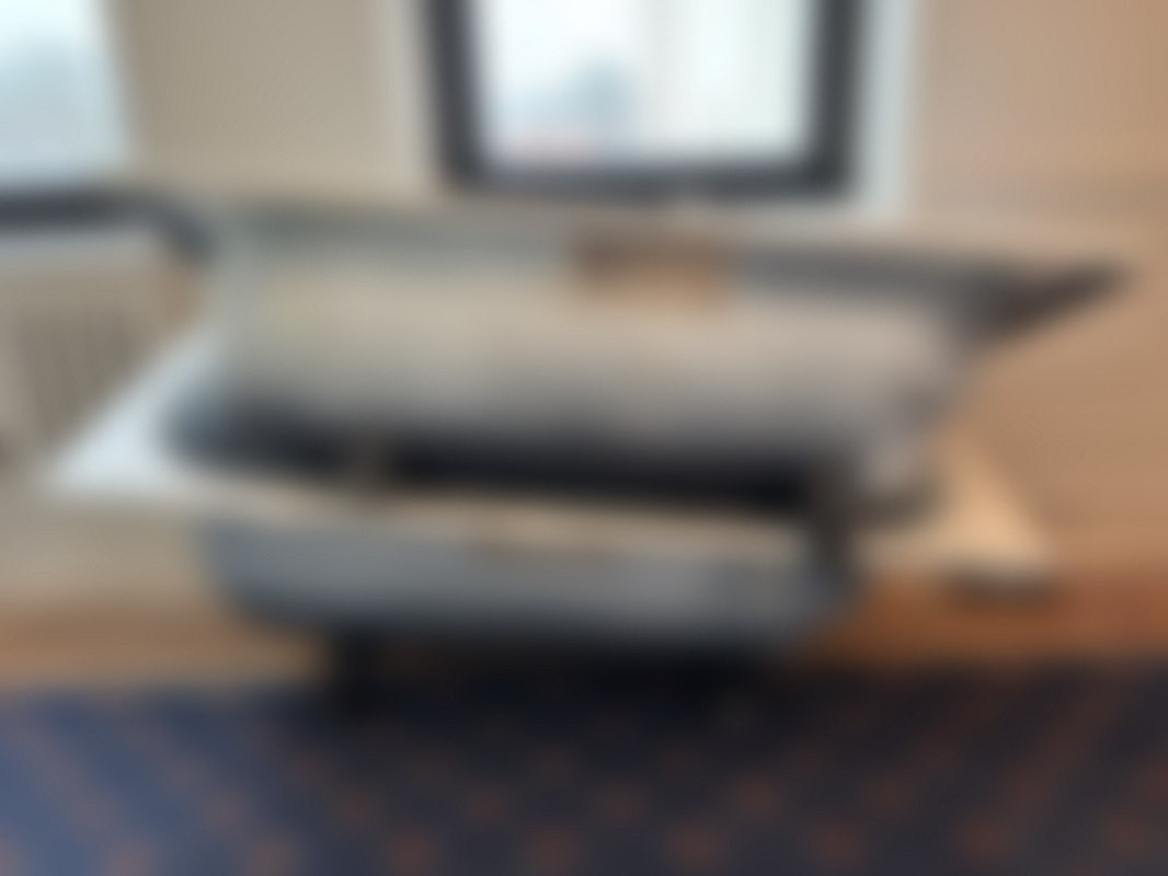 Badkaren står två trappor upp. Badkaren går ej in i hiss..