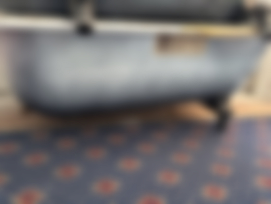 Badkaren står två trappor upp. Badkaren går ej in i hiss..