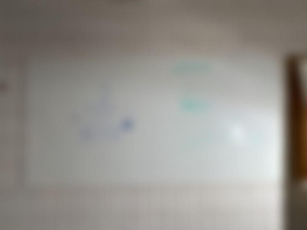 Whiteboarden är monterad på väggen.