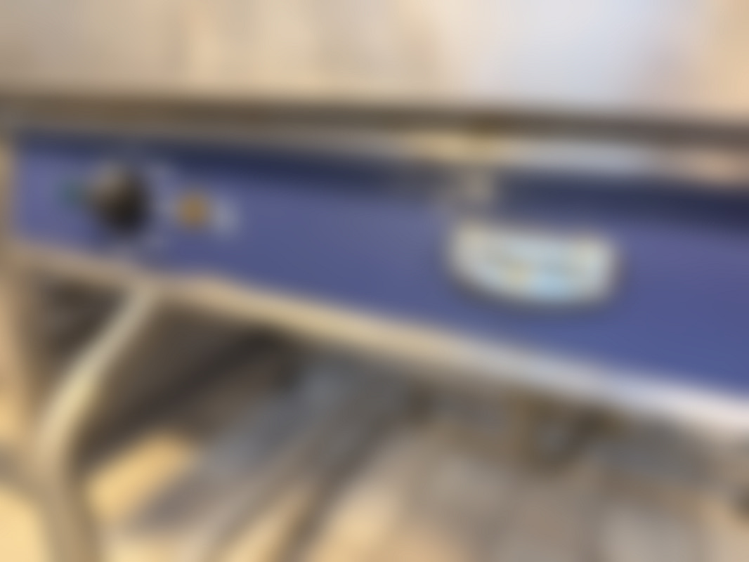 ElectroluxElectrolux stekbord med bred rostfri häll och blå frontpanel. Utrustad med två temperaturreglage och indikatorlampor på fronten; hällen står på en metallram med ben.
