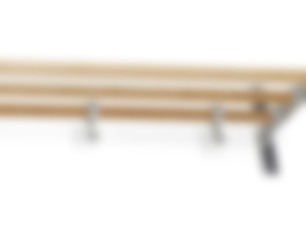 850 krHatthylla med konsoler och krokar av aluminium. Rör av trä. Omonterad. Utsprång 270 mm.