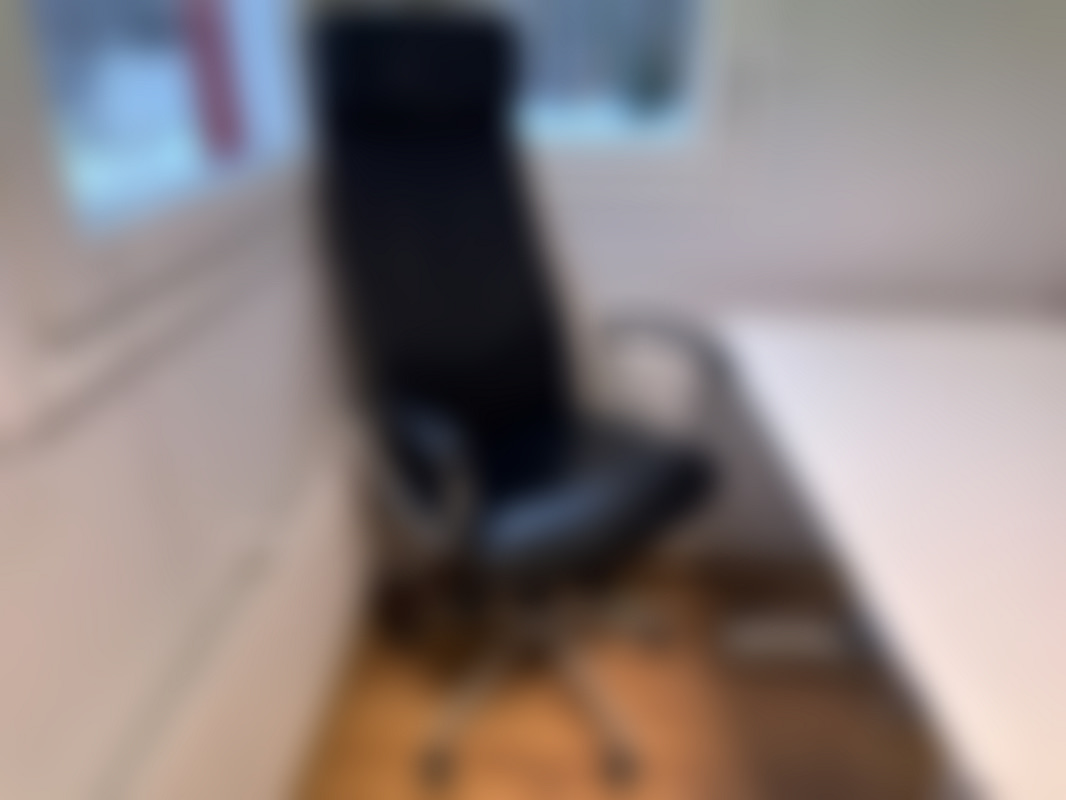 Not allowedArbetsplats bestående av skrivbord, kontorsstol och hurts.