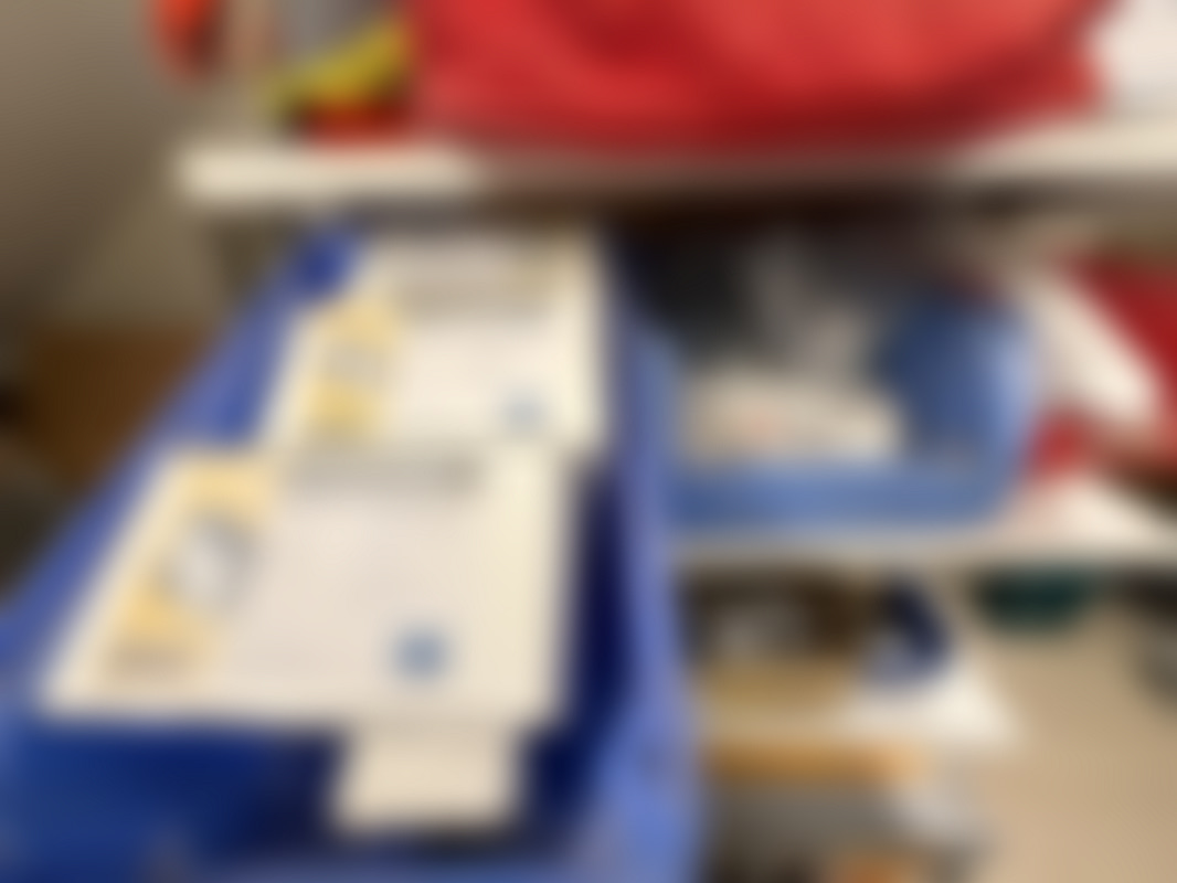 Allt på hyllan blandat parti med klossar, skruv, limpistol, fönsterhandtag