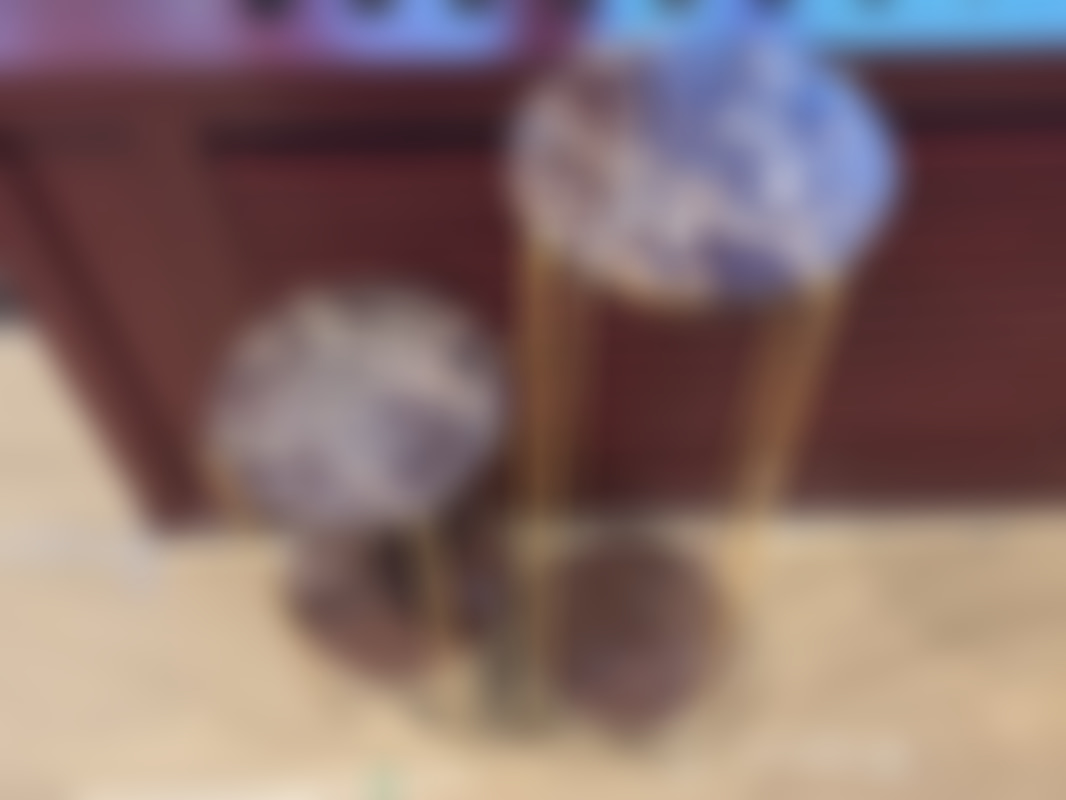 Not allowed2 st piedestaler med gulmetall och marmorskiva samt 2 st bordslampor med fot i marmor.