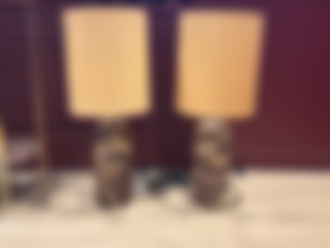Piedestal, 2 st samt 2 st bordslampor, marmor
