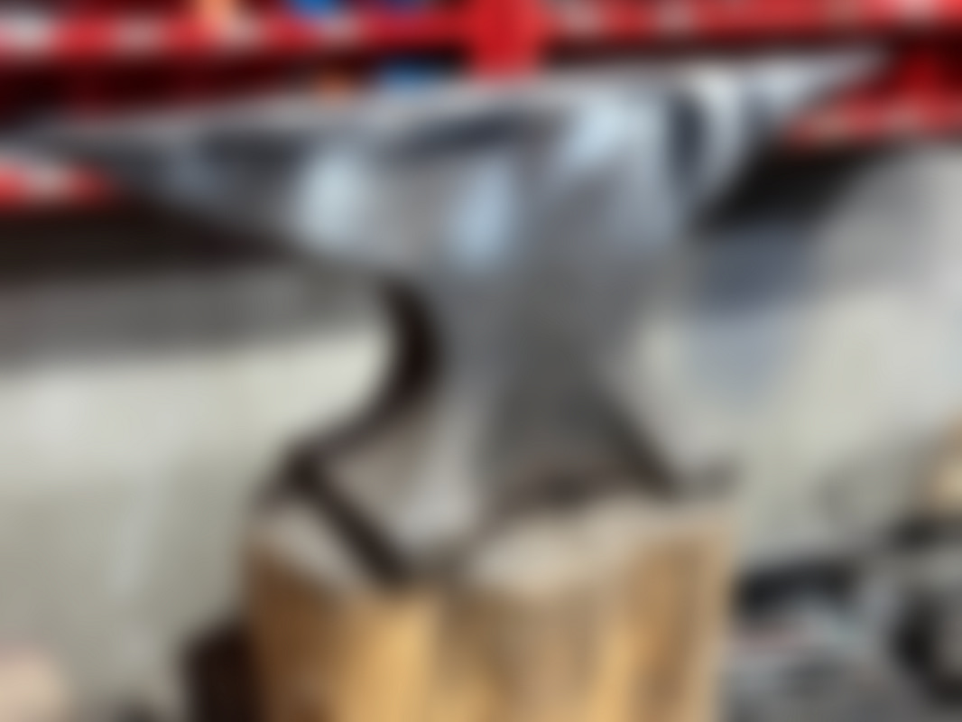 Not allowedStort smidesstäd av järn placerad på en trästubb.
