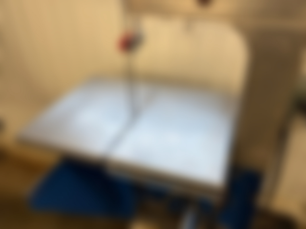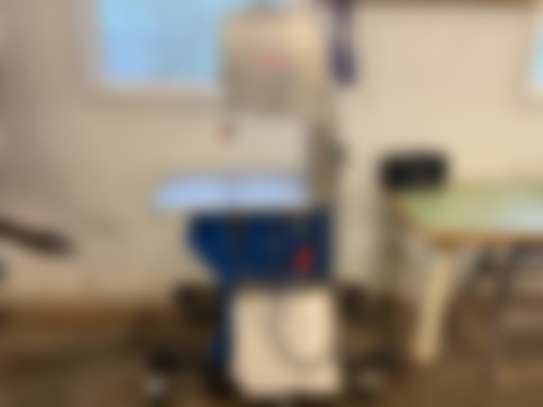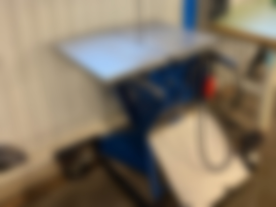 Not allowedBordsbandsåg från Bankeryd i blå färg med metallskydd och arbetsbord.