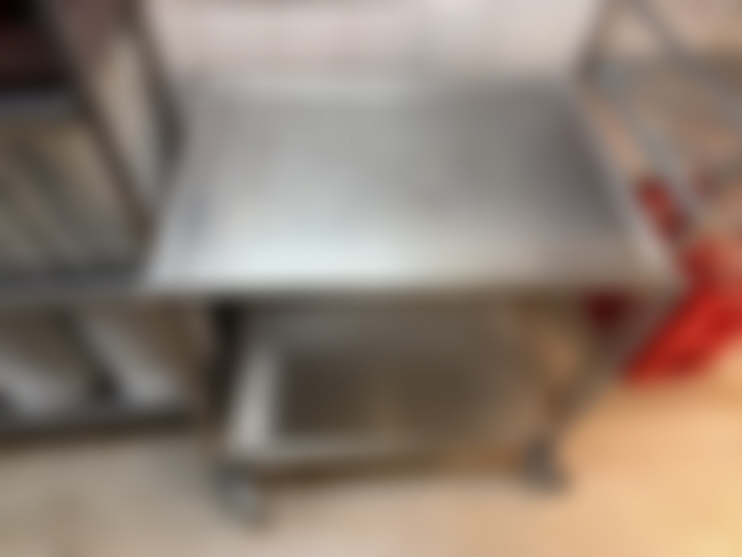 Not allowedKöksvagn i rostfritt stål med två hyllor och fyra hjul.