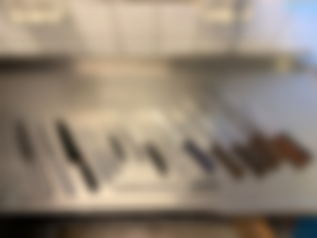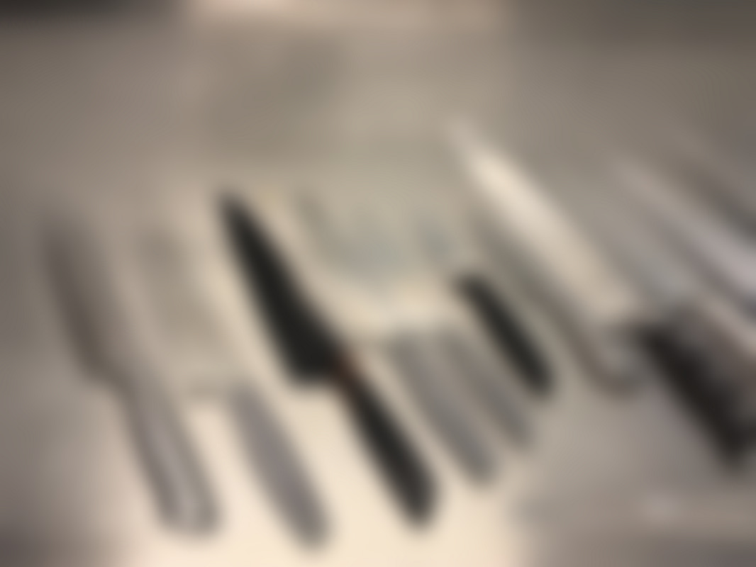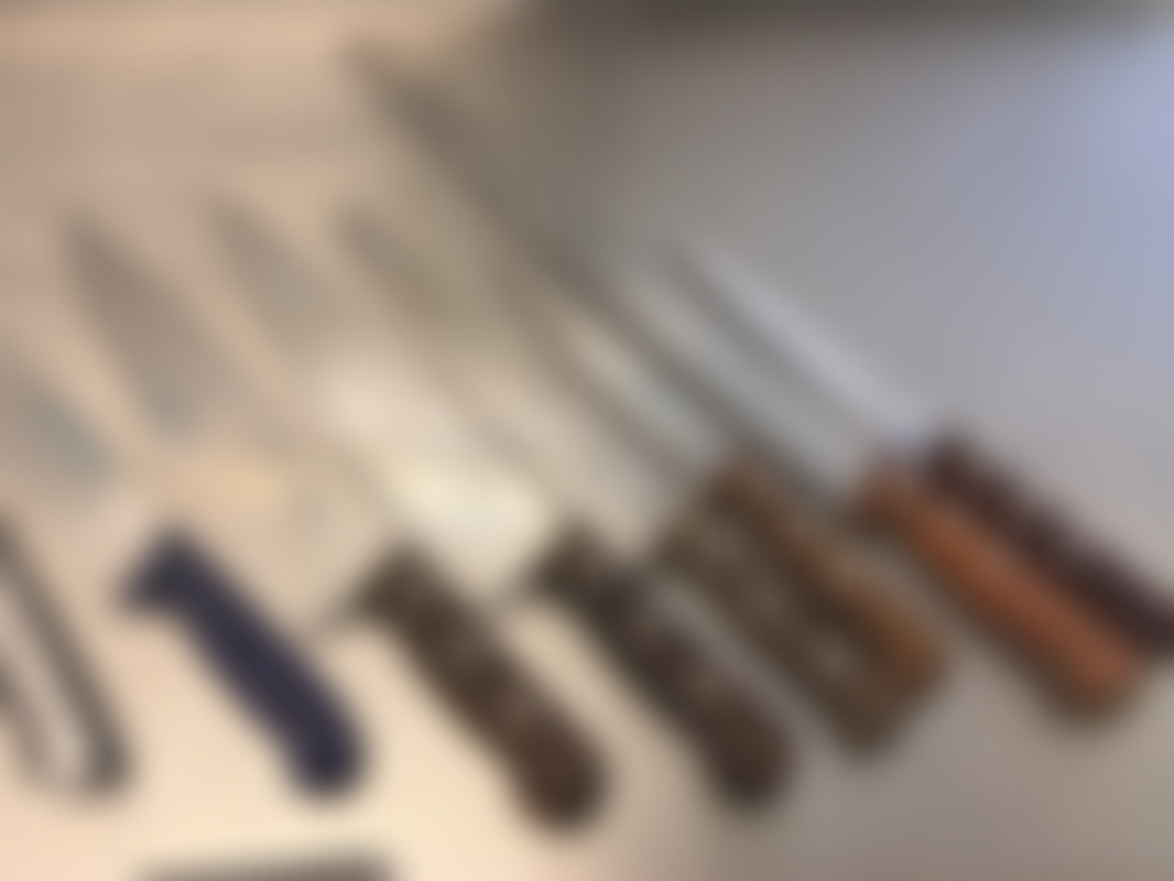 Handtagen är av trä eller syntet och bladen inkluderar filéknivar och brödknivar.