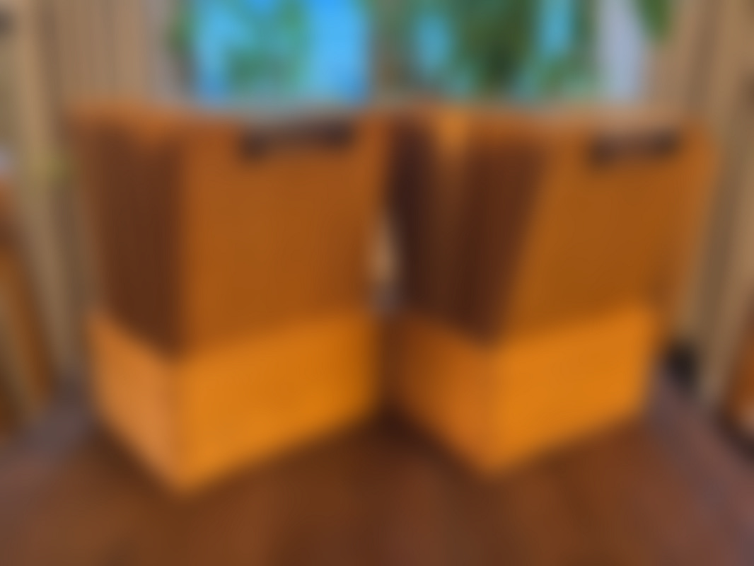 Med 2 st trälådor som ställ.