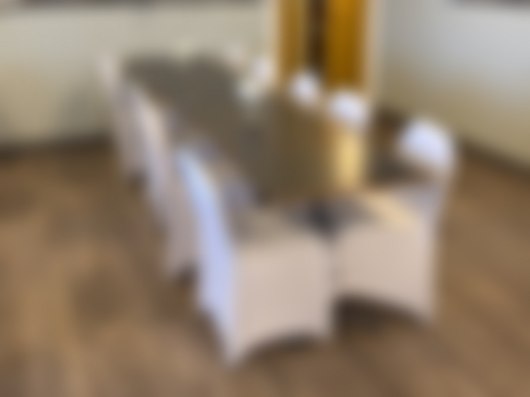 Vita stolsöverdrag medföljer.