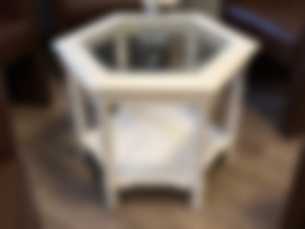 Bordsskivan är av glas.