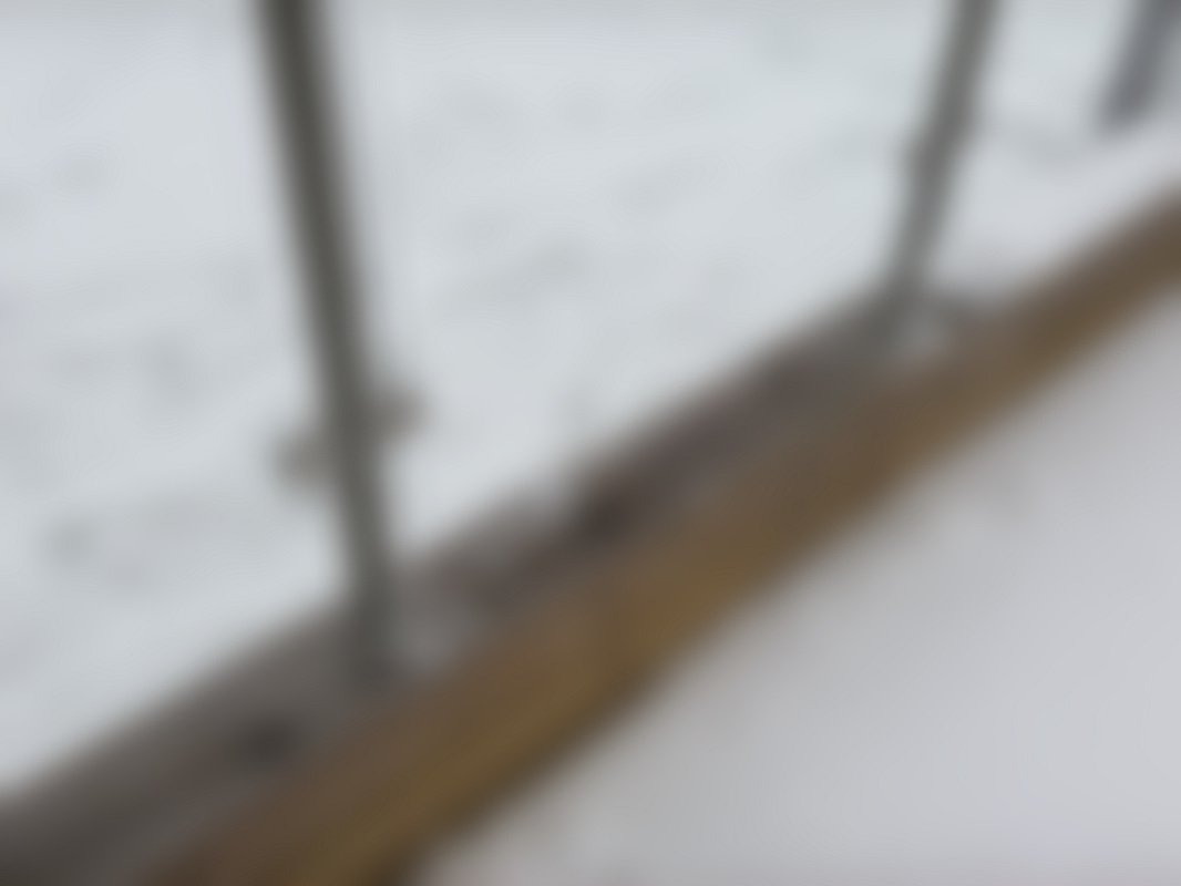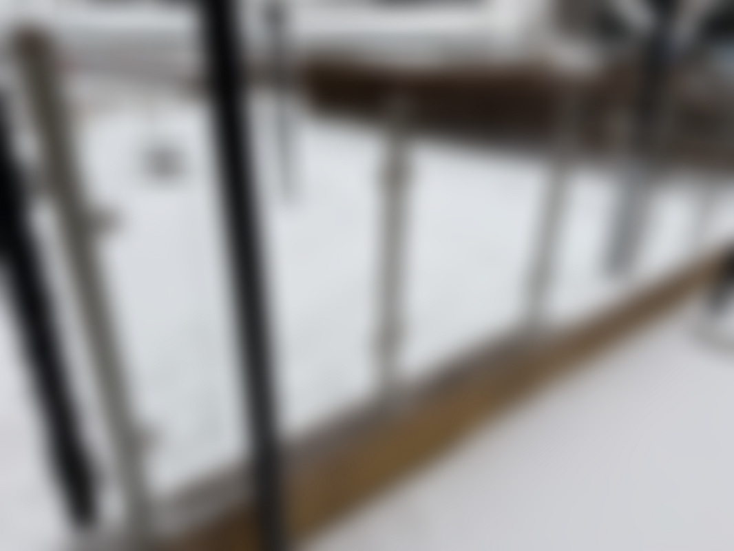 Not allowedGlasräcke med glaspaneler monterat längs ett trädäck, totalt ca 15 meter.