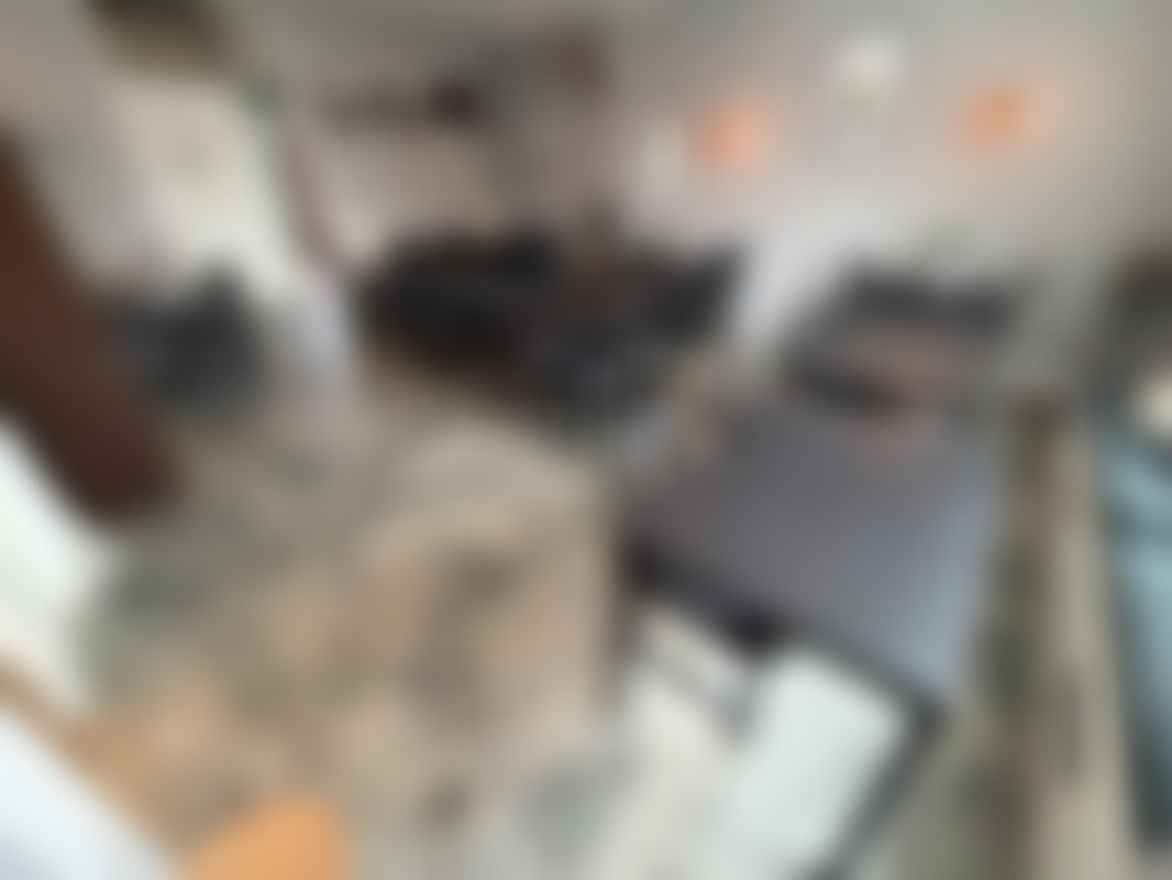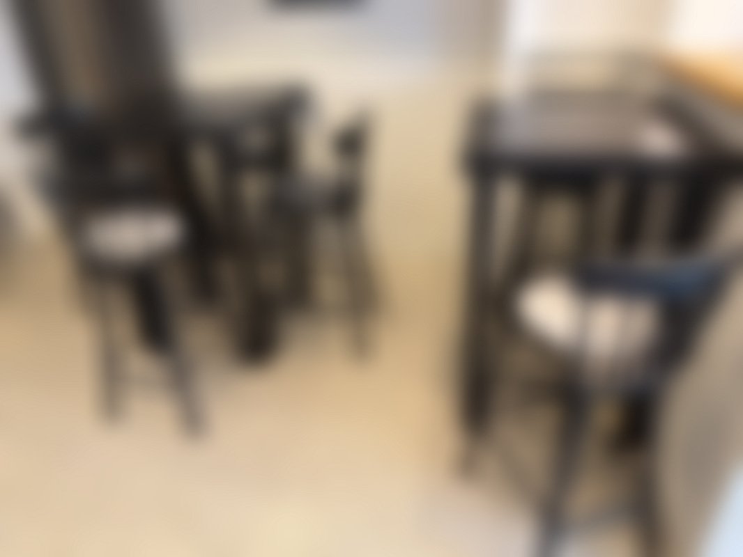 Det bruna skåpet i serveringslokalen samt sittbänkarna ingår ej.