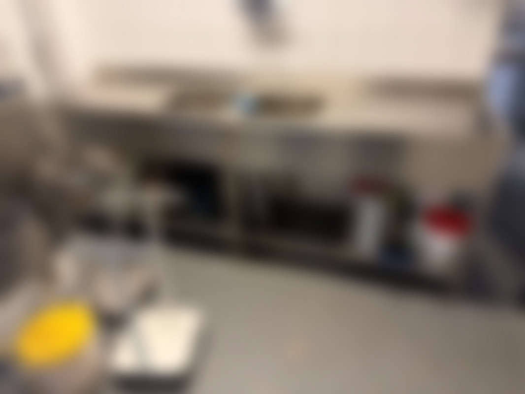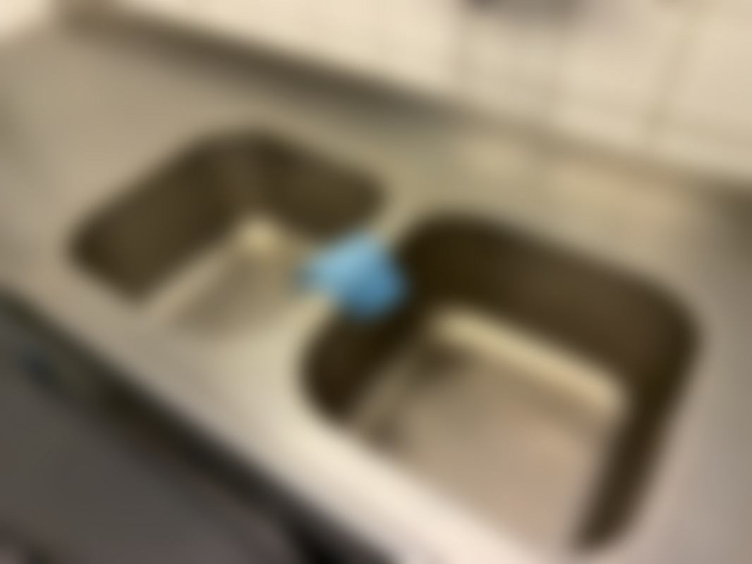 Not allowedRostfri diskbänk med dubbla hoar och hyllor under. Mått ca 65x240 cm.