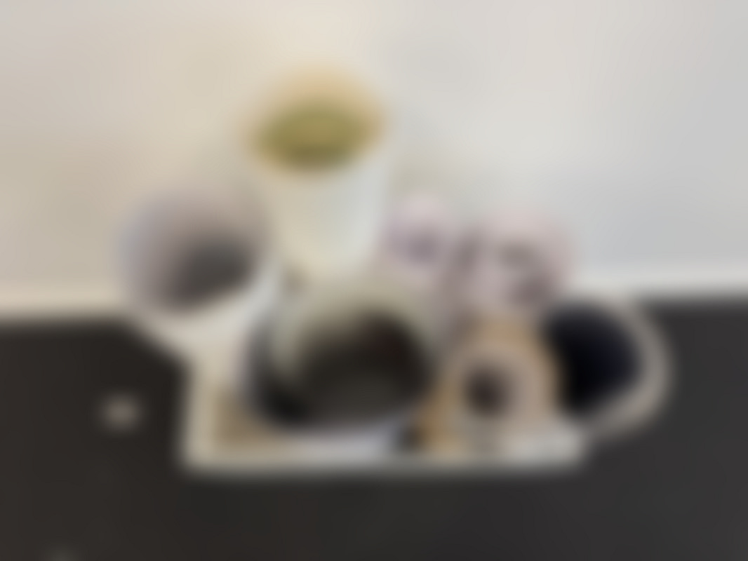 Parti med krukor, vaser och plastblommor