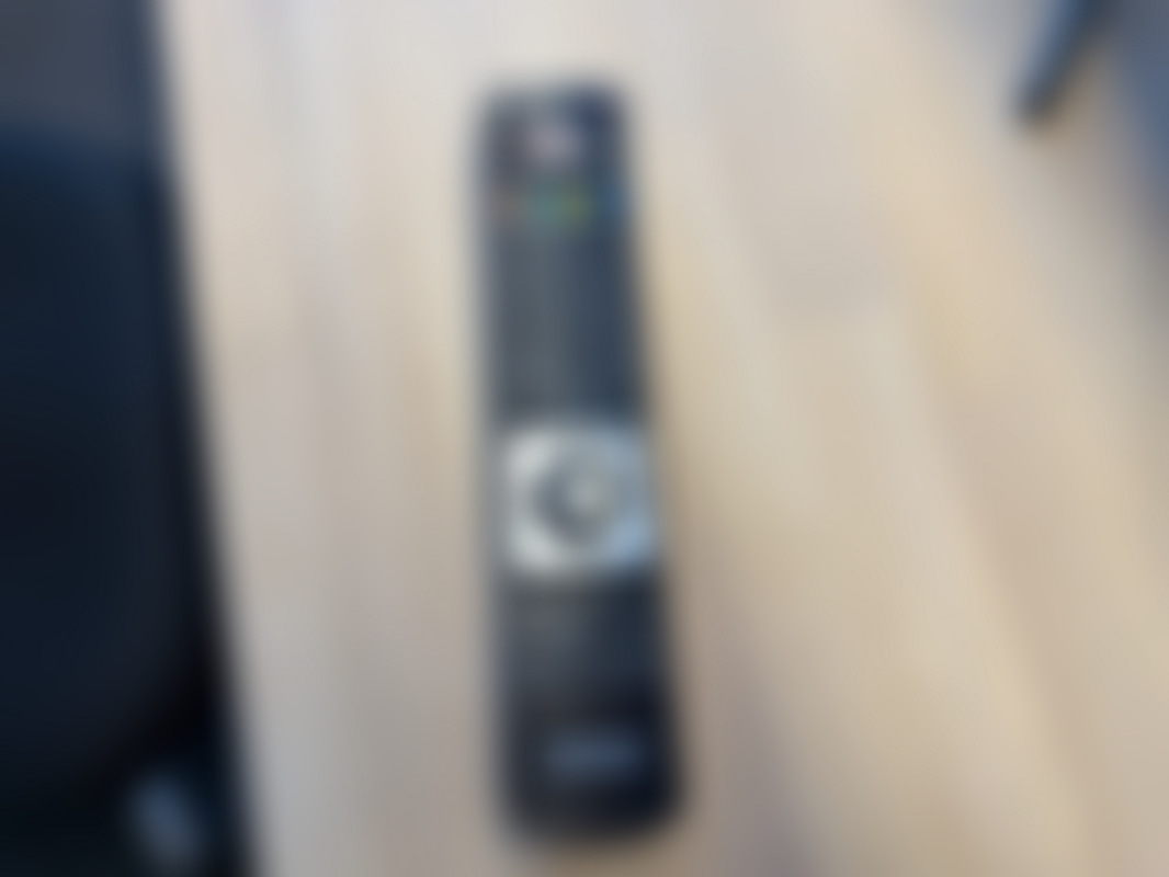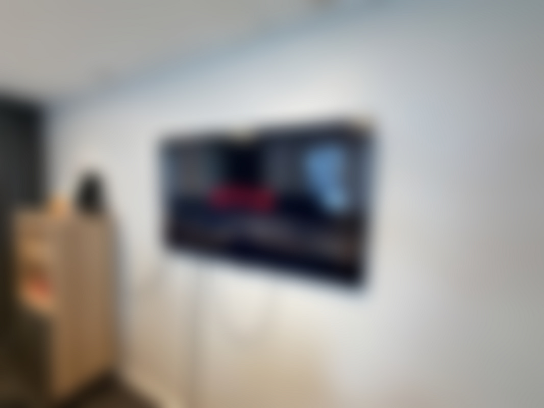 Not allowedTV med väggfäste och fjärrkontroll.