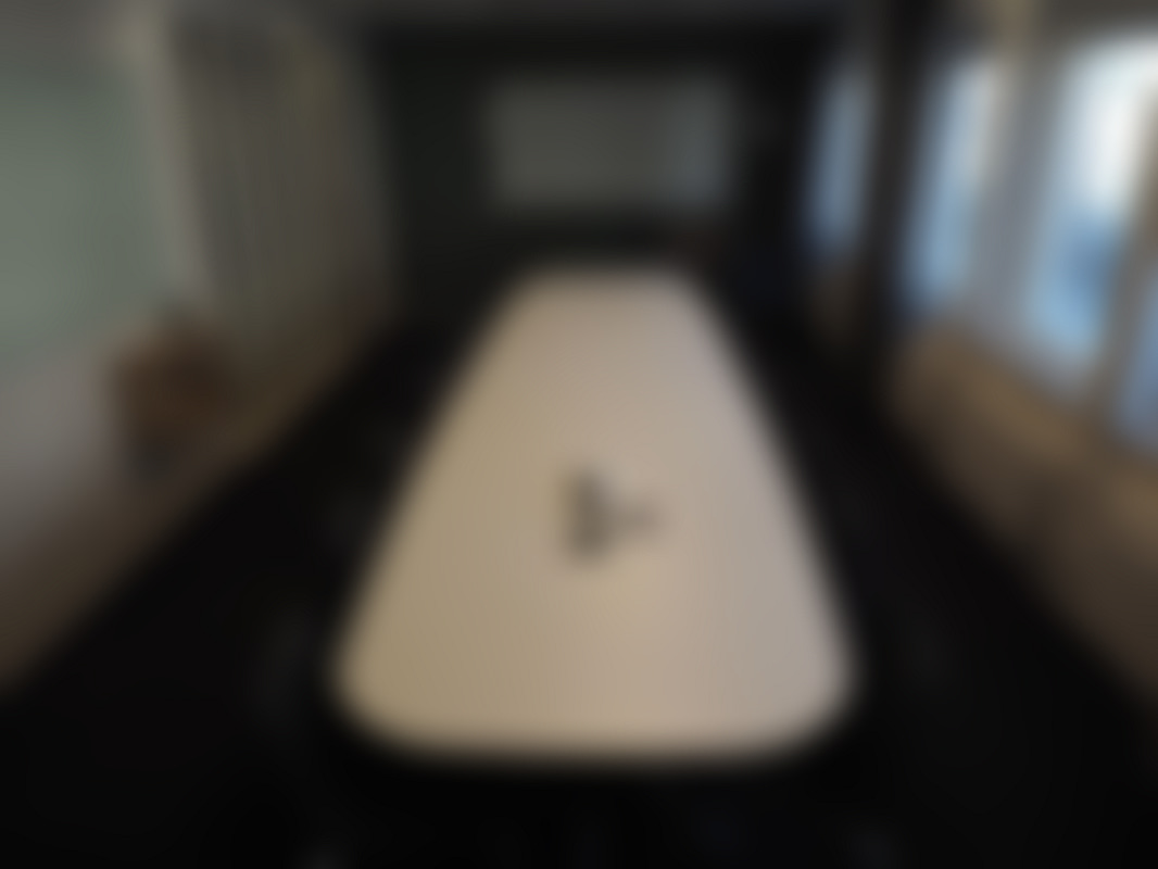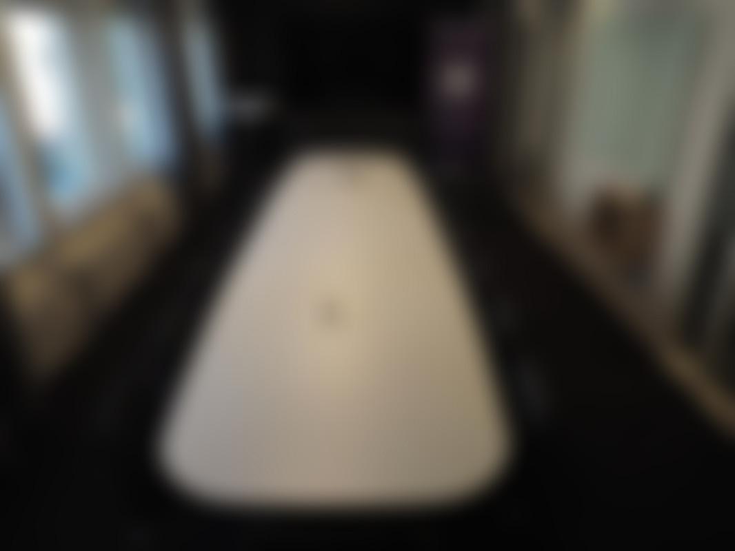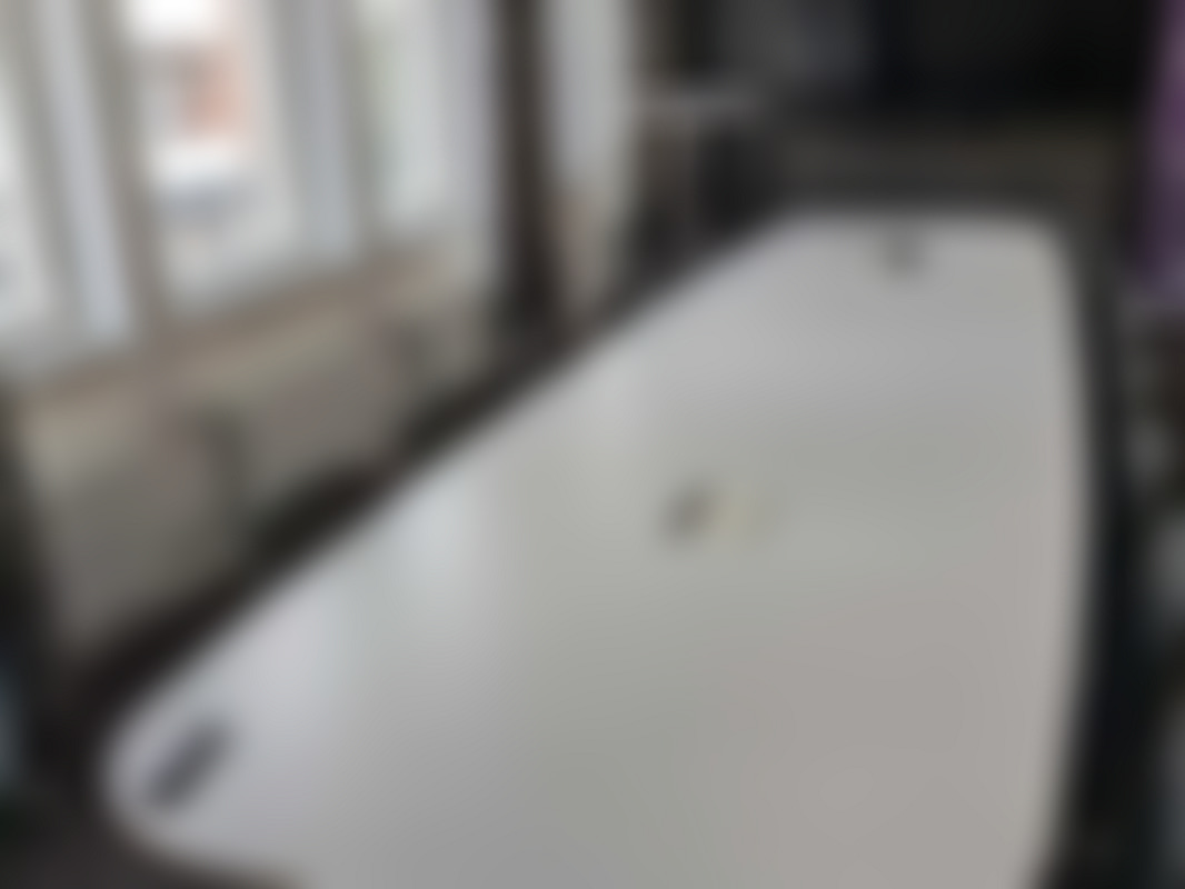 Not allowedExklusivt och tungt vitt konferensbord med uttag.
