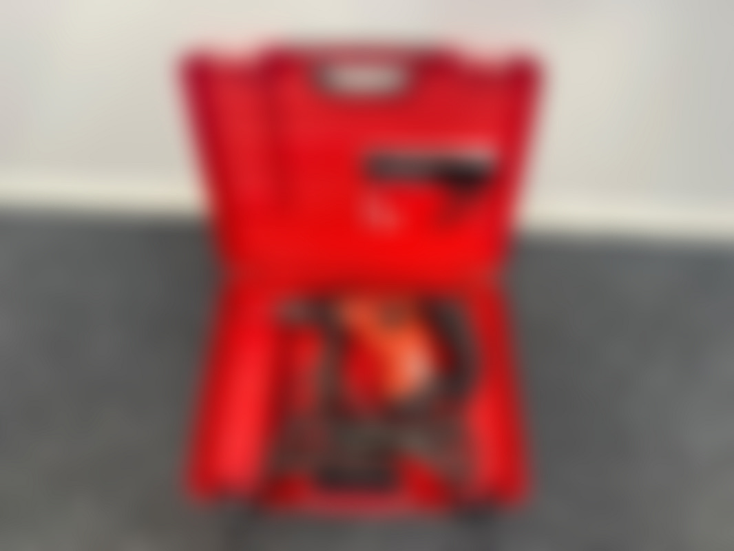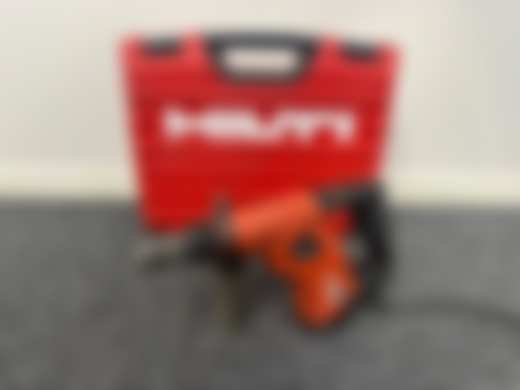 HiltiEldriven borrhammare från Hilti modell TE 7. (u.å.) Produkten kommer i plastfordal tillsammans med ett ergonomisk handtag och en instruktionsbok.