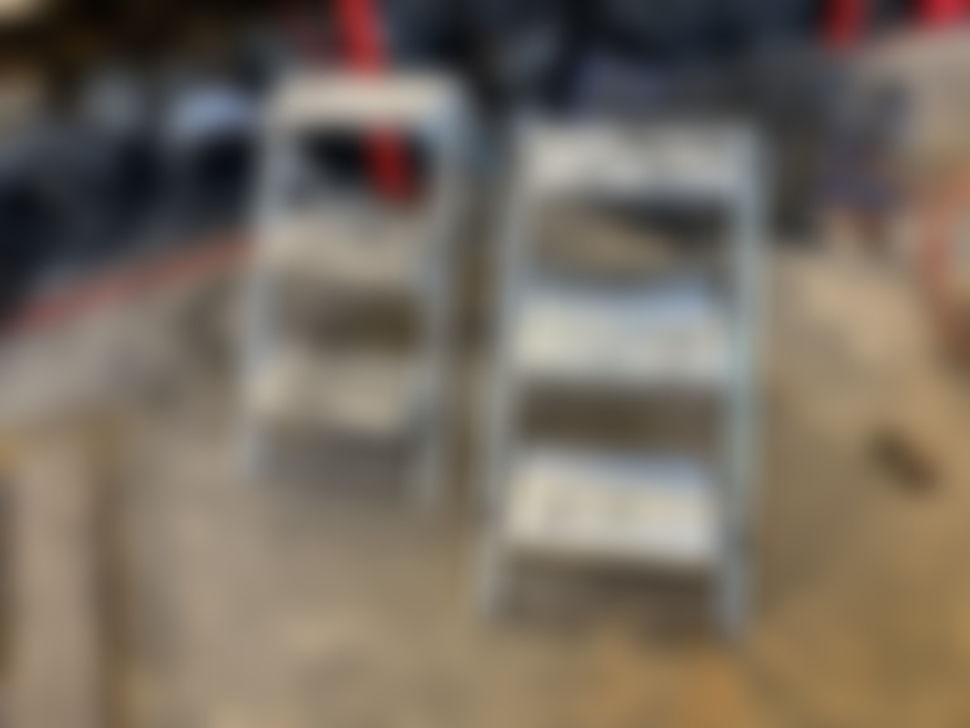Not allowedTvå aluminiumstrappstegar med tre steg och en liten övre plattform, höjd cirka 700 mm. Stegen har räfflade ytor för bättre grepp.