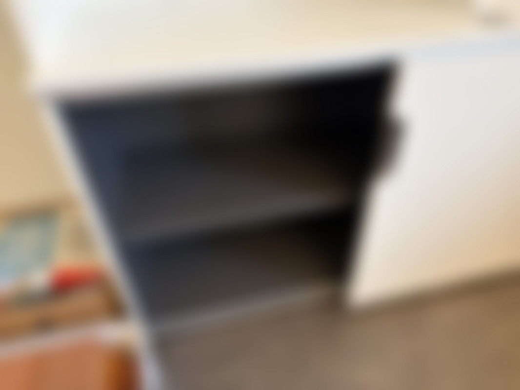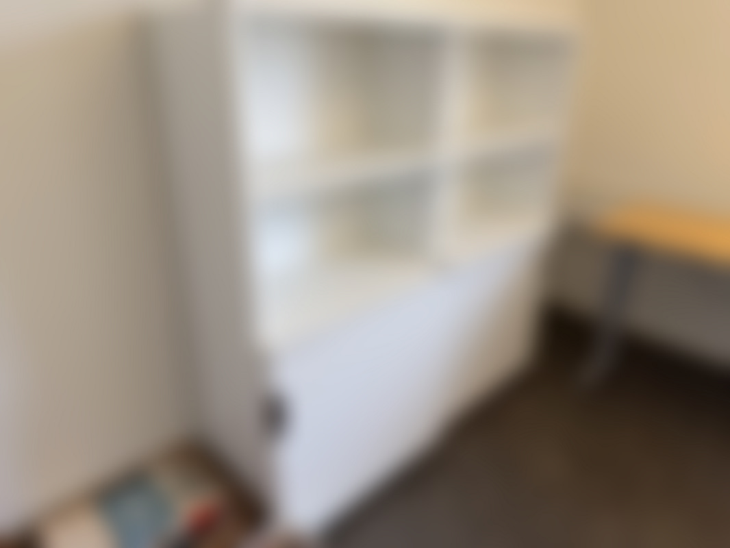 Vitt skåp med skjutdörrar.